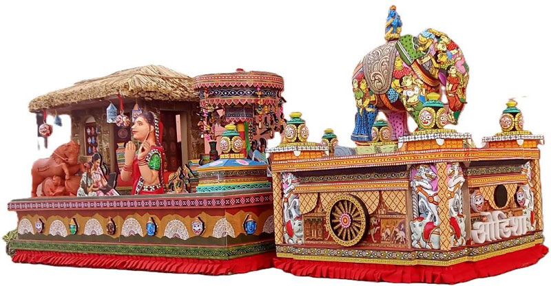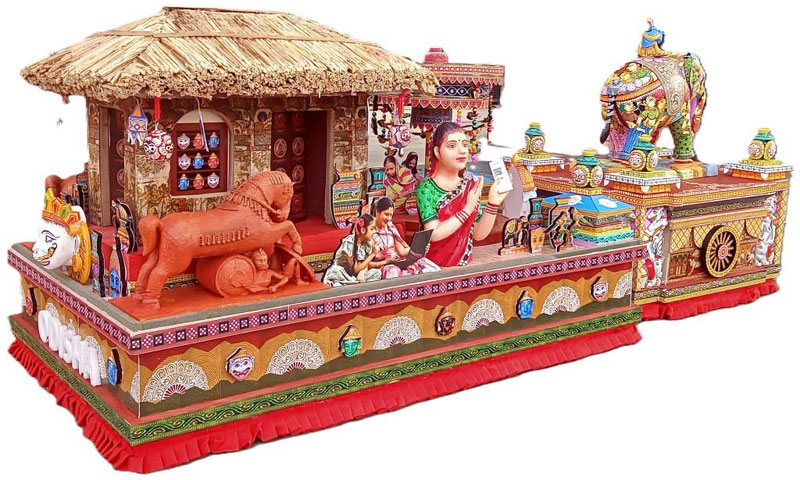 ରାଜ୍ୟ ସରକାରଙ୍କ ପକ୍ଷରୁ ପ୍ରାପ୍ତ ସୂଚନା ପ୍ରକାରେ, ଦେଶର ଅର୍ଥନୈତିକ ବିକାଶ ଏବଂ ସାମାଜିକ ଉନ୍ନତି ପାଇଁ ମହିଳା ସଶକ୍ତୀକରଣ ଜରୁରୀ ହୋଇଥିବାରୁ ଓଡିଶାର ସମୃଦ୍ଧ ହସ୍ତଶିଳ୍ପ ଓ ହସ୍ତତନ୍ତ ମାଧ୍ୟମରେ ମହିଳା ସଶକ୍ତୀକରଣକୁ ଏହି ପ୍ରଜ୍ଞାପନ ମେଢ ମାଧ୍ୟମରେ ପ୍ରଦର୍ଶନ କରାଯାଇଛିା ପ୍ରଜ୍ଞାପନ ମେଢର ଅଗ୍ର ଭାଗରେ ଥିବା କନ୍ଦର୍ପ ହସ୍ତୀ ଉତ୍କଳୀୟ କଳାକୃତିର ଏକ ଲୋକପ୍ରିୟ ଓ ଅନନ୍ୟ ବିଷୟବସ୍ତୁା ରାସଲୀଳାରେ ଭଗବାନ ଶ୍ରୀକୃଷ୍ଣଙ୍କ ପ୍ରତି ଗୋପୀମାନଙ୍କ ପ୍ରେମ ଓ ଭକ୍ତି ପରି ଏହା ବିକଶିତ ଭାରତ ପ୍ରତି ଓଡ଼ିଶାର ମହିଳାମାନଙ୍କ ନିଷ୍ଠାପୂର୍ଣ୍ଣ ସମର୍ପଣକୁ ଦର୍ଶାଉଛିା ବିକଶିତ ଭାରତରେ ଓଡ଼ିଶାର ମହିଳା ସ୍ୱୟଂ ସହାୟକ ଗୋଷ୍ଠୀର ଶକ୍ତି ଓ ସାମର୍ଥ୍ୟ, ହାତୀର ଶକ୍ତି ଓ ସାମର୍ଥ୍ୟ ସହ ସମକକ୍ଷ ବୋଲି କନ୍ଦର୍ପ ହସ୍ତୀ ମାଧ୍ୟମରେ ପ୍ରମାଣିତ କରାଯାଇଛିା ସେହିପରି, ମେଢ ଅଗ୍ରଭାଗର ଉଭୟ ପାଶ୍ୱର୍ରେ ଥିବା ଶ୍ରୀଜଗନ୍ନାଥଙ୍କ ରଥର ଚକକୁ ଓଡ଼ିଶାର ପ୍ରଗତିର ଚକ ଭାବେ ପ୍ରତିପାଦିତ କରାଯାଇଛିା ହସ୍ତକଳା ଓ ହସ୍ତତନ୍ତ କ୍ଷେତ୍ରରେ ମହିଳାଙ୍କ ଅଂଶଗ୍ରହଣକୁ ଦର୍ଶାଉଥିବା ଏହି ମେଢର ମଧ୍ୟଭାଗରେ ଡଙ୍ଗରିଆ ଶାଲ, ପିପିଲିର ଚାନ୍ଦୁଆ, ରଘୁରାଜପୁରର ପଟ୍ଟଚିତ୍ର କଳା ଭଳି ଉତ୍ପାଦକୁ ଲାଇଭ୍ ପ୍ରଦର୍ଶନ ମାଧ୍ୟମରେ ପ୍ରଦର୍ଶିତ କରାଯାଇଛିା ଯାହାକି, ଓଡ଼ିଶାର ଗ୍ରାମାଞ୍ଚଳରେ ନିଯୁକ୍ତି ସୁଯୋଗ ବୃଦ୍ଧିକୁ ପ୍ରମାଣିତ କରିବା ସହିତ ରାଜ୍ୟର ଗ୍ରାମାଞ୍ଚଳ ଅର୍ଥନୀତି ସୁଦୃଢ଼ ହୋଇଥିବା ପ୍ରଦର୍ଶିତ କରୁଛିା ସେହିପରି, ବୈଷୟିକ ଜ୍ଞାନକୌଶଳର ଉପଯୋଗ କରି ଓଡିଶାର ଗ୍ରାମୀଣ ମହିଳାମାନେ ମଧ୍ୟ କ୍ୟାସଲେସ୍ କାରବାର କରିବା ସହ ଇ-ପ୍ଲାଟଫର୍ମରେ ନିଜ ଉତ୍ପାଦର ମାର୍କେଟିଂ କରିପାରୁଛନ୍ତିା ଦେବାଦେବୀଙ୍କ ଚଳନ୍ତି ପ୍ରତିମାଙ୍କ ଯାତ୍ରା ସମୟରେ ବ୍ୟବହାର ହେଉଥିବା ବିରାଟକାୟ ଛତା, କାରିଗରମାନଙ୍କ ପ୍ରତି ରାଜ୍ୟ ସରକାରଙ୍କ ଆନ୍ତରିକ ସମର୍ଥନକୁ ଦର୍ଶାଉଛିା ପଟ୍ଟଚିତ୍ର କଳା ମାଧ୍ୟମରେ ପୌରାଣିକ ଚରିତ୍ରକୁ ନେଇ ରଘୁରାଜପୁର ଗ୍ରାମର ମହିଳାମାନେ ପ୍ରସ୍ତୁତ କରୁଥିବା ବିଭିନ୍ନ ଗୃହସଜ୍ଜା ସାମଗ୍ରୀ ଓ ମୁଖା ସମେତ ରଘୁରାଜପୁର ଗ୍ରାମର ଐତିହ୍ୟ ଗୃହକୁ ପ୍ରଜ୍ଞାପନ ମେଢର ପଛ ଭାଗରେ ଦର୍ଶାଯାଇଛିା ବିକାଶପଥରେ ଓଡ଼ିଶା ଅଶ୍ୱ ବେଗରେ ଅଗ୍ରସର ହେଉଥିବାରୁ, ଓଡ଼ିଶା ସରକାରଙ୍କ ପ୍ରତୀକ ତଥା ପ୍ରସିଦ୍ଧ କୋଣାର୍କ ମନ୍ଦିରର ଯୁଦ୍ଧ ଘୋଡ଼ାକୁ ମଧ୍ୟ ସେଠାରେ ସ୍ଥାନିତ କରାଯାଇଛିା ସେହିପରି, ପ୍ରଜ୍ଞାପନ ମେଢର ଉଭୟ ପାଶ୍ୱର୍ରେ ଥିବା ଓଡ଼ିଶାର ଅନନ୍ୟ ଓ ସମୃଦ୍ଧ ହସ୍ତତନ୍ତ ଓ ହସ୍ତଶିଳ୍ପ ଡିଜାଇନ୍, କଳା ଓ କାରିଗରୀ ମାଧ୍ୟମରେ ରାଜ୍ୟରେ ଜୀବିକା ବିକାଶର ସଫଳ କାହାଣୀକୁ ପ୍ରଦର୍ଶିତ କରୁଛିା ଏଥିସହିତ, ପ୍ରଜ୍ଞାପନ ମେଢର ଉଭୟ ପାଶ୍ୱର୍ରେ ସମ୍ବଲପୁରୀ ସଙ୍ଗୀତର ତାଳେତାଳେ କଳାକାରମାନେ ନୃତ୍ୟ ପରିବେଷଣ କରିବୋ