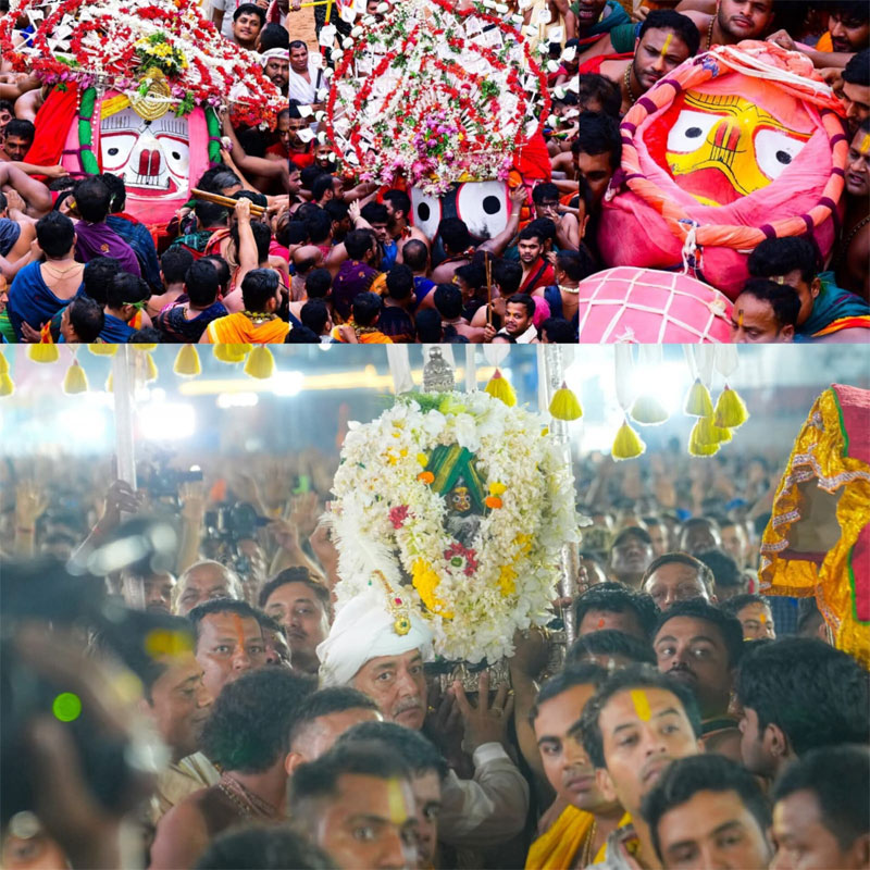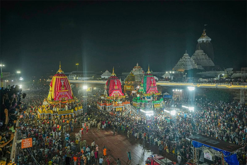 ସରିଛି ୯ଦିନର ଆଡ଼ପ ମଣ୍ଡପ ଲିଳାଖେଳା । ଶୁକ୍ରବାର ସଂଧ୍ଯା ଦର୍ଶନ ପରେ ଶ୍ରୀମନ୍ଦିର ଫେରିବାକୁ ସଜବାଜ ହୋଇଥିଲେ ମହାବାହୁ । ସକାଳୁ ମଙ୍ଗଳାଆଳତି, ଅବକାଶ, ସକାଳ ୮ଟା ୩୦ରେ ଗୋପାଳବଲ୍ଲଭ ଓ ସକାଳଧୂପରେ ଖେଚୁଡି ଭୋଗ ହୋଇଥିଲା । ପରେ ଦଇତାପତି ମାନେ ସେନାପଟା ଲାଗି କରିଥିଲେ । ବିଜେ କାହାଳି ବାଜିବା ପରେ ୯ଟା ୫୫ରେ ବାହୁଡା ପହଣ୍ଡି ଆରମ୍ଭ ହୋଇ ୧୨ଟା ୩୦ରେ ଶେଷ ହୋଇଥିଲା । ଜଗମୋହନ ପାଖରେ ଟାହିଆ ଲାଗି କରାଯାଇଥିଲା । ପରେ ପରେ ଧାଡି ପହଣ୍ଡିରେ ପ୍ରଥମେ ଶ୍ରୀସୁଦର୍ଶନ ପରେ ଶ୍ରୀବଳଭଦ୍ର ,ଦେବୀ ମା ସୁଭଦ୍ରା ଓ ଶେଷରେ ଶ୍ରୀଜଗନ୍ନାଥ ରଥାରୁଢ ହୋଇଥିଲେ । ମଦନମୋହନ ନନ୍ଦିଘୋଷରେ ଓ ରାମକୃଷ୍ଣ ଦର୍ପଦଳନ ରଥରେ ବିଜେ ହୋଇଥିଲେ । ଘଣ୍ଟ ଘଣ୍ଟା, କାହାଳି ଓ ମୃଦଙ୍ଗର ତାଳେ ତାଳେ ପହଣ୍ଡ ପହଣ୍ଡ ପକାଇ ପହଣ୍ଡି ବିଜେ ହୋଇଥିଲେ । ଝୁଲି ଝୁଲି ହଲି ହଲି ଟାହିଆ ହଲାଇ ଆସିବା ଦୃଶ୍ଯ ବେଶ ମନମୁଗ୍ଧକର ହୋଇଥିଲା । ବିଗ୍ରହ ମାନଙ୍କୁ ରଥରେ ରୁନ୍ଧା ଯାଇଥିଲା । ପରେ ଗଜପତି ମହାରାଜା ଦିବ୍ୟସିଂହ ଦେବ ତାମଜାନରେ ଆସି ରଥ ପାଖରେ ପହଞ୍ଚିବା ପରେ ତିନିରଥରେ ଛେରାପହଁରା କରିଥିଲେ । ୨ଟା ୪୦ରେ ଛେରାପହଁରା ଶେଷ ହୋଇଥିଲା । ପରେ ଅପରାହ୍ନ ୨ଟା୫୦ରେ ଶ୍ରୀବଳଭଦ୍ରଙ୍କ ତାଳଧ୍ବଜ ରଥ ଟଣା ଆରମ୍ଭ ହୋଇଥିଲା । ୩ଟା୩୦ରେ ମା ସୁଭଦ୍ରାଙ୍କ ଦର୍ପଦଳନ ରଥ ଓ ଶେଷରେ ଅପରାହ୍ନ ୪ଟାରେ ମହାପ୍ରଭୁ ଶ୍ରୀଜଗନ୍ନାଥଙ୍କ ନନ୍ଦିଘୋଷ ରଥ ଟଣା ଆରମ୍ଭ ହୋଇଥିଲା । ହରିବୋଲ, ହୁଳୁହୁଳି ,ଜୟ ଜଗନ୍ନାଥ ଧ୍ବନିରେ ପ୍ରକମ୍ପିତ ହୋଇଥିଲା ଶରଧାବାଲି ଓ ବଡଦାଣ୍ଡ । ଶ୍ରୀନଅର ସମ୍ମୁଖରେ ନନ୍ଦିଘୋଷ ରଥ ପହଞ୍ଚିବା ପରେ ଲକ୍ଷ୍ମୀନାରାୟଣ ଭେଟ ନୀତି ଅନୁଷ୍ଠିତ ହୋଇଥିଲା । ବିଳମ୍ବିତ ସଂଧ୍ଯା ଅର୍ଥାତ ୯.୩୦ ମିନିଟରେ ଶ୍ରୀମନ୍ଦିର ସମ୍ମୁଖରେ ଲାଗିଥିଲା ନନ୍ଦିଘୋଷ। ସିଂହଦ୍ୱାର ଠାରେ ମହାପ୍ରଭୁଙ୍କ ନନ୍ଦିଘୋଷ ପହଞ୍ଚିବା ପରର ଦୃଶ୍ଯ ଥିଲା ବେଶ ମନୋରମ । ସମସ୍ତ ସେବାୟତ ଏକ ସ୍ୱରରେ ମହାପ୍ରଭୁଙ୍କ ସମ୍ମୁଖ ରେ ଗୀତ ଗୋବିନ୍ଦ ଗାଇବାର ଦେଖାଯାଇଥିଲା । ଶ୍ରୀମନ୍ଦିର ଆଖପାଖ ଅଞ୍ଚଳର ଜୟ ଜଗଦୀଶ ହରେ ନାମ ଗୁଞ୍ଜରିତ ହୋଇଥିଲା ।ଯାହା ଏକ ଭକ୍ତିମୟ ପରିବେଶ ସୃଷ୍ଟି କରିଥିଲା ।