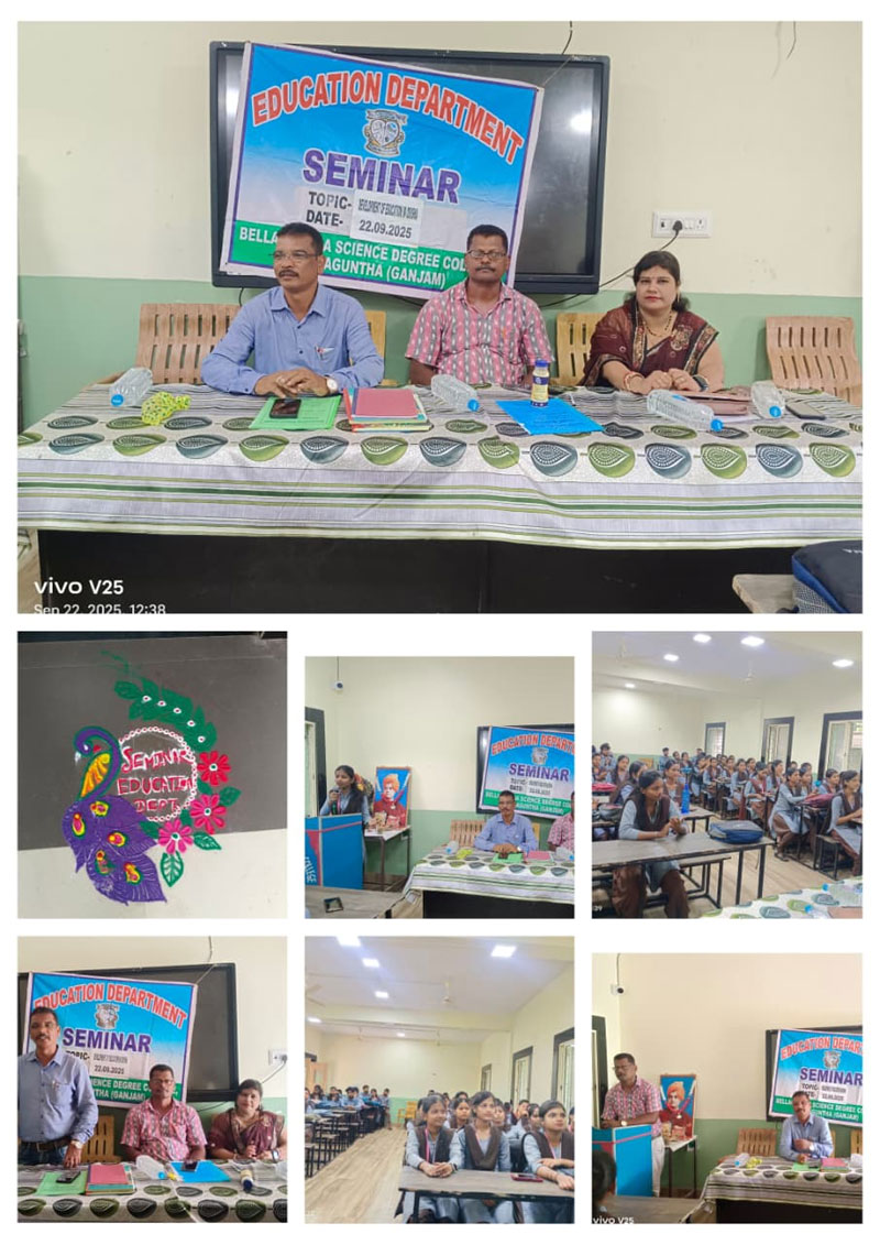 ବେଲଗୁଣ୍ଠା, -(ଶିବରାମ ଚୌଧୁରୀ )-, ବେଲଗୁଣ୍ଠା ସ୍ଥିତ ବିଜ୍ଞାନ ସ୍ନାତକ ମହାବିଦ୍ୟାଳୟରେ ଶିକ୍ଷା ବିଭାଗର ଏକ ଆଲୋଚନା ଚକ୍ର ଅଧ୍ୟାପକ ପ୍ରଫୁଲ୍ଲ କୁମାର ଜେନାଙ୍କ ଅଧ୍ୟକ୍ଷତାରେ ଅନୁଷ୍ଠିତ ହୋଇଯାଇଛି I ଏହି ଅବସରରେ ସାହିତ୍ୟ ବିଭାଗ ମୁଖ୍ୟ ସପନ କୁମାର ପ୍ରଧାନ ଏବଂ ଯୁବ ସାମ୍ବାଦିକ ଶିବରାମ ଚୌଧୂରୀ ମଞ୍ଚାସୀନ ଥିଲେ I ଶିକ୍ଷା ବିଭାଗୀୟ ମୁଖ୍ୟ ଅଧ୍ୟାପିକା ପିଙ୍କି ପାତ୍ର ପାଠ ଚକ୍ର କାର୍ଯ୍ୟକ୍ରମକୁ ପରିଚାଳନା କରିବା ସହ ଓଡ଼ିଶାରେ ଶିକ୍ଷାର ବିକାଶ ସମ୍ପର୍କରେ ଆଲୋଚନା କରିଥିଲେ I ତୃତୀୟ ବର୍ଷର ଛାତ୍ରୀ ସୁଶ୍ରୀ ସୋନାଲି ବରାଡ଼ ସନ୍ଦର୍ଭ ପାଠ କରିଥିଲେ I କାର୍ଯ୍ୟକ୍ରମରେ ଶିକ୍ଷା ବିଭାଗର ସମସ୍ତ ଛାତ୍ରଛାତ୍ରୀ ଅଂଶଗ୍ରହଣ କରିଥିବା ବେଳେ ଅଧ୍ୟାପିକା ପିଙ୍କି ପାତ୍ର ଧନ୍ୟବାଦ ଜ୍ଞାପନ କରିଥିଲେ I