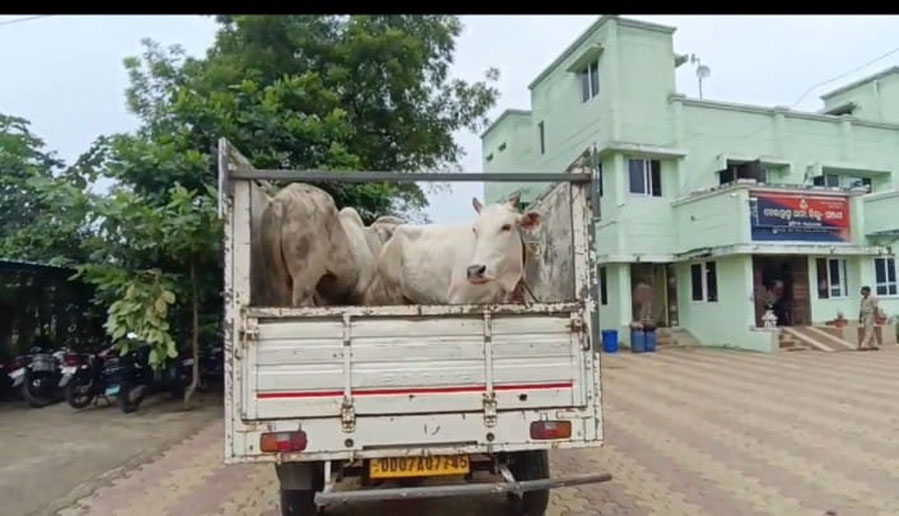 ଗୋରୁ ଚାଲାଣକୁ ରୋକିଲl ବେଲଗୁଣ୍ଠା ପୋଲିସ୍