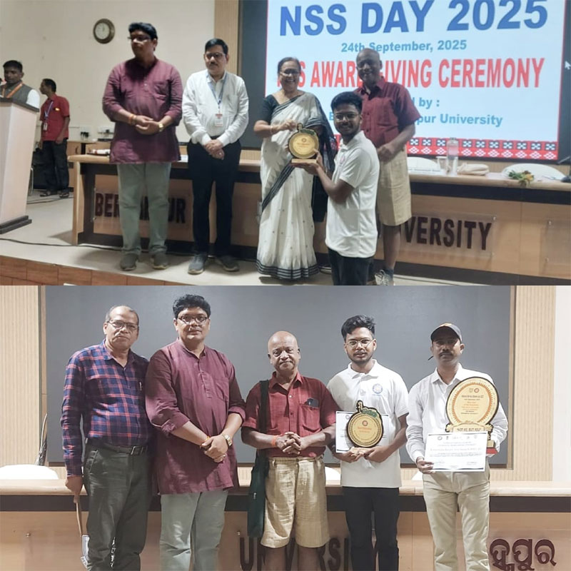 ପାରଳାଖେମୁଣ୍ଡି / ବାଳକୃଷ୍ଣ ପାଣିଗ୍ରାହୀ : ବ୍ରହ୍ମପୁର ବିଶ୍ୱବିଦ୍ୟାଳୟ , ଭଞ୍ଜବିହାରର ନୂତନ ସମ୍ମିଳନୀ ହଲ୍ ଠାରେ ଗଜପତି ଜିଲ୍ଲା କଶୀନଗରର ଶ୍ରୀରାମ ଡିଗ୍ରୀ କଲେଜ ପାଇଁ ଏକ ଗୌରବର ମୁହୂର୍ତ୍ତ ହେଲା। ଗଣିତ ବିଭାଗର ଅଧ୍ୟାପକ ଏବଂ ଜାତୀୟ ସେବା ଯୋଜନା ପୁରୁଷ ୟୁନିଟ୍ ପ୍ରୋଗ୍ରାମ ଅଫିସର ଶ୍ରୀ ବିଶ୍ୱ ରଞ୍ଜନ ଗୌଡ଼ ୨୦୨୪–୨୫ ବର୍ଷର ବିଶ୍ୱବିଦ୍ୟାଳୟ ସର୍ବୋତ୍କୃଷ୍ଟ ୟୁନିଟ୍ ଅୱାର୍ଡ ପାଇଥିବା ବେଳେ , ପୂର୍ବତନ ଛାତ୍ର ଶ୍ରୀ ଦୀପକ ରଞ୍ଜନ ମହାପାତ୍ରଙ୍କୁ ସର୍ବୋତ୍କୃଷ୍ଟ ସ୍ୱୟଂସେବକ ପୁରସ୍କାର ଏନ୍ଏସ୍ଏସ୍ ଦିବସରେ କୁଳପତି ଗିତାଞ୍ଜଳୀ ଦାଶଙ୍କ ଠାରୁ ପାଇଛନ୍ତି I