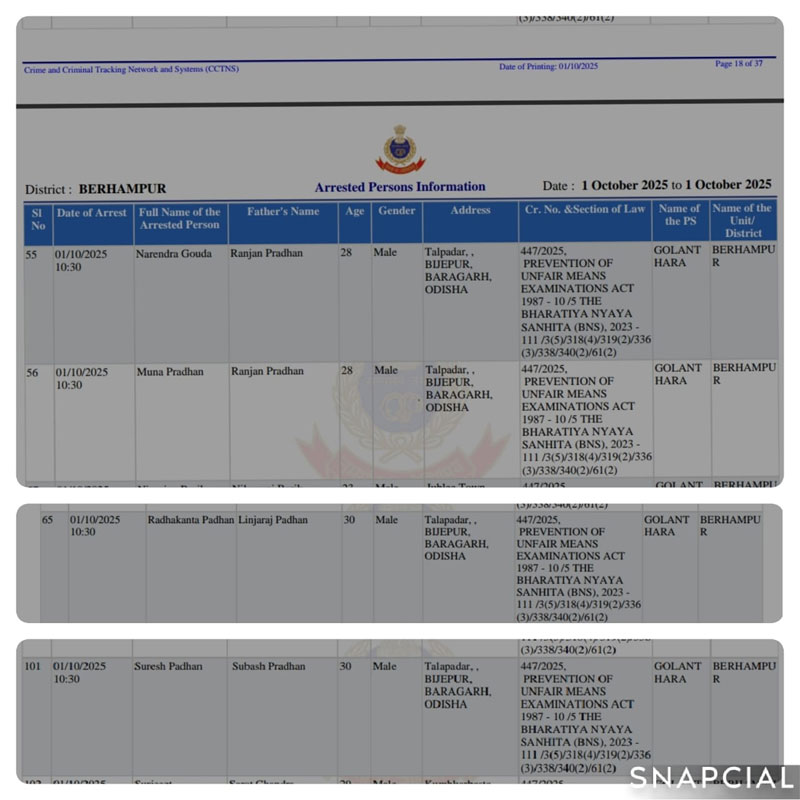 ବ୍ରହ୍ମପୁର ପୋଲିସର ବିଶେଷ ଦଳ ୨୪୩ ଜଣ ପ୍ରାର୍ଥୀଙ୍କୁ ଗିରଫ କରିଛି। ପୋଲିସ ତଥ୍ୟ ଅନୁସାରେ, ପ୍ରାର୍ଥୀମାନଙ୍କୁ ପ୍ରଥମେ ୧୦ ଲକ୍ଷ ଟଙ୍କା ଦେବାକୁ ପଡ଼ୁଥିଲା। ଚାକିରି ପାଇଲେ, ବାକି ୧୫ ଲକ୍ଷ ଟଙ୍କା ପୁଣି ଦେବାର ସର୍ତ୍ତ ରହିଥିଲା। ଅର୍ଥାତ୍ ପ୍ରତିଜଣଙ୍କୁ ୨୫ ଲକ୍ଷରେ ଏସ.ଆଇ. ପଦ ‘ବିକ୍ରି’ ହେଉଥିଲା।