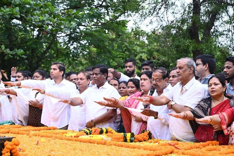 ଜନସମ୍ପର୍କ ପଦଯାତ୍ରା ନେଇ ଗାନ୍ଧୀଙ୍କ ମୂର୍ତ୍ତି ପାଖରେ ସମସ୍ତେ ନେଲେ ସଂକଳ୍ପ