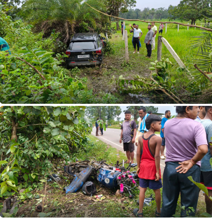 କାର ଓ ମୋଟର ସାଇକେଲ ମୁହାଁ ମୁହିଁ ଧକ୍କା , ୪ ଆହତ