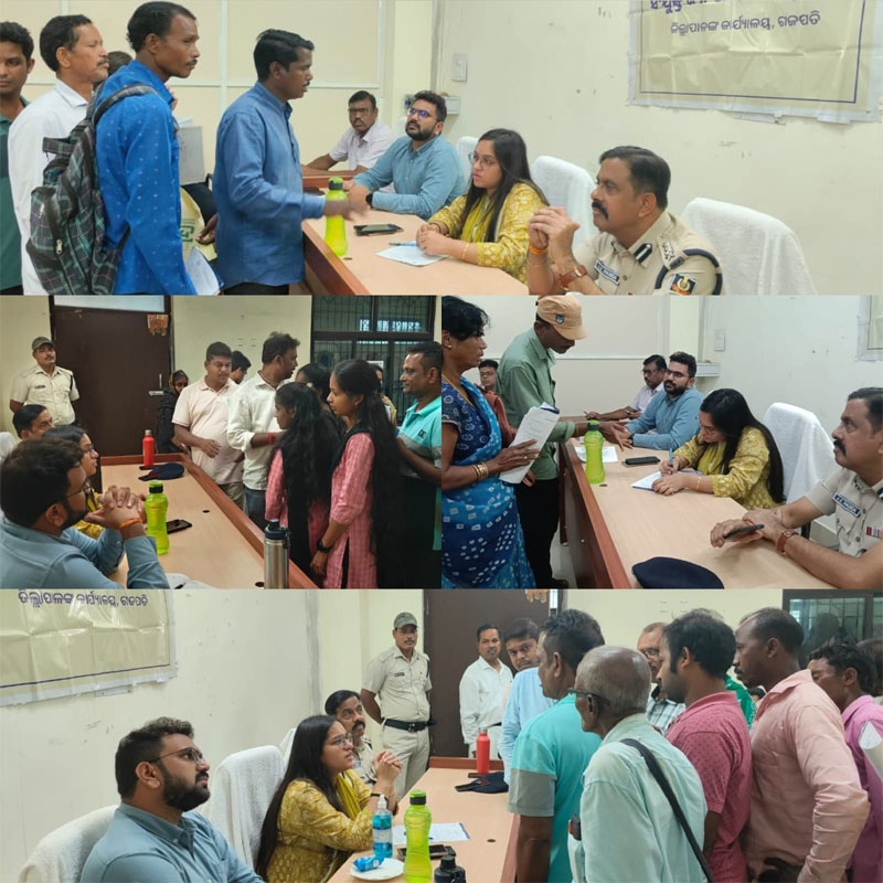 ପାରଳାଖେମୁଣ୍ଡି / ବାଳକୃଷ୍ଣ ପାଣିଗ୍ରାହୀ : ଗଜପତି ଜିଲ୍ଲା ସଦର ମହକୁମା ପାରଳାଖେମୁଣ୍ଡି ସ୍ଥିତ ଜିଲ୍ଲାପାଳଙ୍କ କାର୍ଯ୍ୟଳୟ ସମ୍ମିଳନୀ କକ୍ଷ ଠାରେ ଗ୍ରାମ୍ୟ ମୁଖୀ ପ୍ରଶାସନ ସଂଯୁକ୍ତ ଜନ ଅଭିଯୋଗ ଶୁଣାଣୀ ଅନୁଷ୍ଠିତ ହୋଇଯାଇଅଛି।