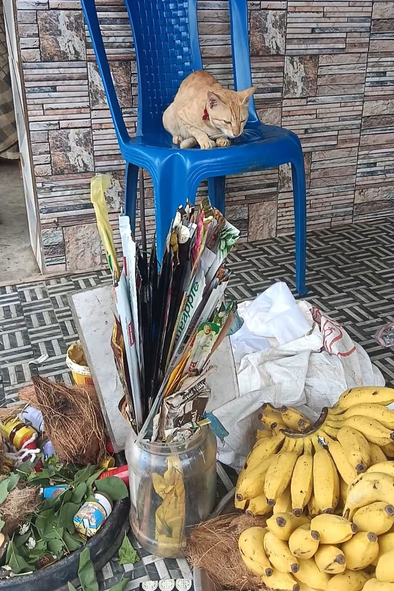 ମନ୍ଦିର ନିକଟରେ କେ.ଭବାନୀ ପ୍ରତିଦିନ ଦୀପ, ଘିଅ, ଧୂପ, ନଡ଼ିଆ, କଦଳୀ ଓ ଭୋଗ ସାମଗ୍ରୀ ବିକ୍ରି କରୁଛନ୍ତି। ଘର ବାରଣ୍ଡାରେ ଭୋଗ ସାମଗ୍ରୀ ରଖି ଚେୟାରଟିଏ ପକାଇ ବସିଥାନ୍ତି। ନିକଟରେ ତାଙ୍କର ଆଦରର ବିରାଡି ଜଗି ବସିଥାଏ । କିଛି କାମରେ ମହିଳାଜଣକ ଘର ଭିତରକୁ ଗଲେ ବିରାଡ଼ି ଟି ଚେୟାର ଉପରେ ବସି ଭୋଗ ସାମଗ୍ରୀ ଜଗିଥାଏ । ବାହାରୁ ଯଦି କେହି ଗ୍ରାହକ ଭୋଗ କିଣିବାକୁ ଆସନ୍ତି ବିରାଡ଼ି ଟି ଗ୍ରାହକକୁ ଜୁଳୁ ଜୁଳୁ ଅନାଇ ମିଆଁଉ ମିଆଁଉ ହୋଇଥାଏ। ସତେ ଯେମିତି କ'ଣ ନେବ ବୋଲି ତା' ଭାଷାରେ ପଚାରିଥାଏ।