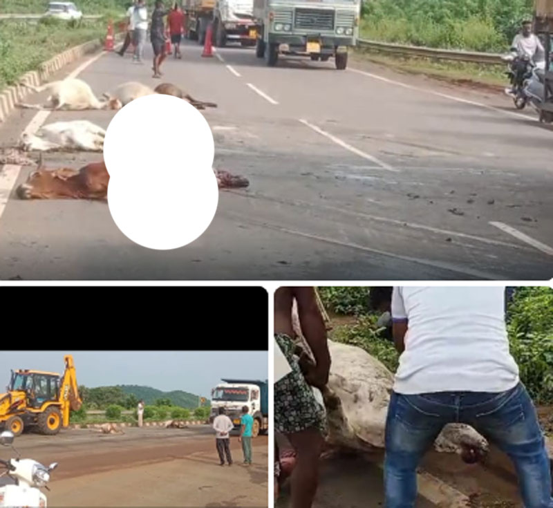 ଗୋରୁଗାଈ ଙ୍କ ଉପରେ ଚଢିଗଲା ଟ୍ରକ,୧୦ ଗୋରୁଗାଈ ଙ୍କ ମୃତ୍ୟୁ
