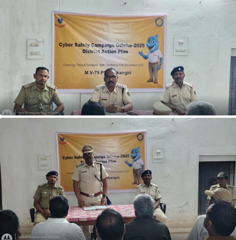 ମାଲକାନଗିରି ରୁ ସୁରେନ୍ଦ୍ର ବେମାଲ: ଆଜି ମାଲକାନଗିରି ଜିଲ୍ଲା ଏମ ଭି ୭୯ ଥାନା ପ୍ରାଙ୍ଗଣରେ ପୋଲିସ ବିଭାଗ ପକ୍ଷରୁ “ସାଇବର ସୁରକ୍ଷା ଅଭିଯାନ” ଆୟୋଜିତ କରାଯାଇଛି। କାର୍ଯ୍ୟକ୍ରମରେ ସ୍ଥାନୀୟ ଅଧିକାରୀମାନେ ଓ ସାଧାରଣ ଲୋକ ଯୋଗଦେଇଥିଲେ।