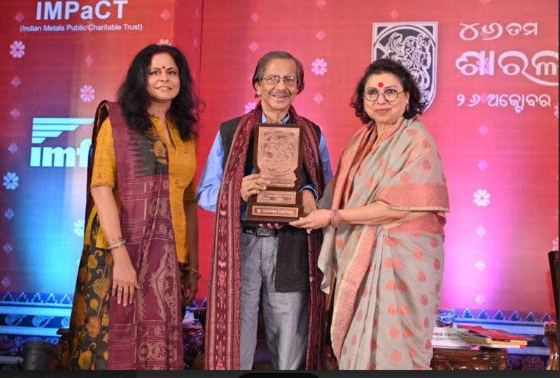 ଭୁବନେଶ୍ୱର, ୨୬/୧୦: ଶ୍ରେଷ୍ଠ ସାହିତ୍ୟ କୃତି ପାଇଁ ପ୍ରତି ବର୍ଷ ଇଣ୍ଡିଆନ୍ ମେଟାଲ୍ସ ପବ୍ଲିକ୍ ଚାରିଟେବୁଲ ଟ୍ରଷ୍ଟ (ଇମ୍ପାକ୍ଟ) ପକ୍ଷରୁ ପ୍ରଦାନ କରାଯାଉଥିବା ମର୍ଯ୍ୟାଦାଜନକ ‘ଶାରଳା ପୁରସ୍କାର’ ଚଳିତ ବର୍ଷ ସୁଖ୍ୟାତ କବି ଓ କଥାକାର ଦେବଦାସ ଛୋଟରାୟଙ୍କୁ ପ୍ରଦାନ କରାଯାଇଛି। ରବିବାର ସନ୍ଧ୍ୟାରେ ସ୍ଥାନୀୟ ହୋଟେଲ ସ୍ୱସ୍ତି ପ୍ରିମିୟମରେ ଆୟୋଜିତ ଏକ ବର୍ଣ୍ଣାଢ଼୍ୟ ଉତ୍ସବରେ ମୁଖ୍ୟ ଅତିଥି ଭାବେ ଯୋଗ ଦେଇ ବିଶିଷ୍ଟ ହିନ୍ଦୀ କବି ଓ ଲେଖିକା ପ୍ରଫେସର ସବିତା ସିଂହ ବିଜେତାଙ୍କୁ ଏହି ପୁରସ୍କାର ପ୍ରଦାନ କରିଛନ୍ତି। ତାଙ୍କର ଗଳ୍ପ ସଂକଳନ ‘ମ୍ୟାଟିନି ଶୋ’ ପାଇଁ ପ୍ରାପ୍ତ ଏହି ପୁରସ୍କାର ବାବଦରେ ଲେଖକଙ୍କୁ ତାମ୍ରଫଳକ, ଉପାୟନ ସହିତ ସାତଲକ୍ଷ ଟଙ୍କାର ଅର୍ଥରାଶି ପ୍ରଦାନ କରାଯାଇଛି। ଏଥିସହିତ କଳା କ୍ଷେତ୍ରରେ ଜୀବନବ୍ୟାପୀ ସାଧନା ପାଇଁ ବର୍ଷିୟାନ୍ ଓଡ଼ିଶୀ ସଙ୍ଗୀତ ଗୁରୁ ଶ୍ରୀ ରାମହରି ଦାସ ଏବଂ ପ୍ରସିଦ୍ଧ ଚିତ୍ରଶିଳ୍ପୀ ଶ୍ରୀ ବଳଦେବ ମହାରଥାଙ୍କୁ ଅଢ଼େଇଲକ୍ଷ ଟଙ୍କା ଲେଖାଏଁ ଅର୍ଥରାଶି ଓ ତାମ୍ରଫଳକ ସହ ‘ଇଲା-ବଂଶୀଧର ପଣ୍ଡା କଳା ସମ୍ମାନ’ ପ୍ରଦାନ କରାଯାଇଛି।
