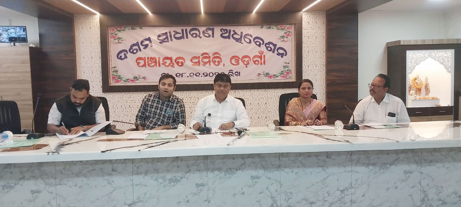 ଓଡ଼ଗାଁ,୧୮/୧୧(ଶ୍ରୀକାନ୍ତ କୁମାର ମିଶ୍ର): ନୟାଗଡ଼ ଜିଲ୍ଲା ଓଡ଼ଗାଁ ପଞ୍ଚାୟତ ସମିତି ଅଧ୍ୟକ୍ଷ ଲୋକନାଥ ସାହୁଙ୍କ ଅଧ୍ୟକ୍ଷତାରେ ବ୍ଳକ କନଫରେନ୍ସ ହଲରେ ଦଶମ ସାଧାରଣ ବୈଠକ ମଙ୍ଗଳବାର ଅନୁଷ୍ଠିତ ହୋଇଯାଇଛି। ଉପାଧ୍ୟକ୍ଷ ମୀରା ନାୟକ, ଗୋଷ୍ଠୀ ଉନ୍ନୟନ ଅଧିକାରୀ ଜିତେନ୍ଦ୍ର କୁମାର ନାୟକ, ଓଡ଼ଗାଁ ଗୋଷ୍ଠୀ ସ୍ବାସ୍ଥ୍ୟ ଅଧିକାରୀ ଡା.ନିଲାଞ୍ଜନ ଦାସ, ଜିଲ୍ଲା ପରିଷଦ ସଭ୍ୟ ଝିଲ୍ଲି ପ୍ରଧାନ, ବିରଜା ଲକ୍ଷ୍ମୀ ସାହୁ, ରଣପୁର ବିଧାୟକଙ୍କ ପ୍ରତିନିଧି ଲିଙ୍ଗରାଜ ପାତ୍ର ପ୍ରମୁଖଙ୍କ ସହିତ ବ୍ଳକର ସମସ୍ତ ପଞ୍ଚାୟତର ସରପଞ୍ଚ ସମିତି ସଭ୍ୟ ଏବଂ ବିଭିନ୍ନ ବିଭାଗୀୟ ଅଧିକାରୀ ମାନେ ଆଲୋଚନାରେ ଅଂଶଗ୍ରହଣ କରିଥିଲେ। ମହାତ୍ମାଗାନ୍ଧୀ ଜାତୀୟ ଗ୍ରାମୀଣ ନିଶ୍ଚିତ କର୍ମ ନିଯୁକ୍ତି ଯୋଜନା (ମନରେଗା) ଅନ୍ତର୍ଗତ କାର୍ଯ୍ୟ ଗୁଡ଼ିକୁ ଗତିଶୀଳ କରିବା ନିମନ୍ତେ ଆଗାମୀ ୨୫ ତାରିଖରେ ମନରେଗା ଯୋଜନା ସମ୍ବନ୍ଧୀୟ ସ୍ବତନ୍ତ୍ର ସମନ୍ବୟ ବୈଠକ ଅନୁଷ୍ଠିତ ପାଇଁ ସ୍ଥିର ହୋଇଥିଲା। ପ୍ରଧାନମନ୍ତ୍ରୀ ଆବାସ ଯୋଜନା ଏବଂ ଅନ୍ତୋଦୟ ଯୋଜନା ମାଧ୍ୟମରେ ଗ୍ରାମୀଣ ଗୃହ ନିର୍ମାଣ କାର୍ଯ୍ୟ ନିର୍ଦ୍ଧାରିତ ସମୟରେ ସାରିବା ପାଇଁ ପ୍ରଶାସନ ତରଫରୁ ଯେପରି ସହଯୋଗ ରୁହେ ସେଥିପ୍ରତି ଧ୍ୟାନ ଦେବାକୁ ଅଧ୍ୟକ୍ଷ ଅଧିକାରୀ ଓ କର୍ମଚାରୀ ମାନଙ୍କୁ ନିର୍ଦ୍ଦେଶ ଦେଇଥିଲେ । ୧୨୧ ଅଙ୍ଗନବାଡ଼ି କେନ୍ଦ୍ରକୁ ବିଦ୍ୟୁତ୍ ଯୋଗାଣ ନେଇ ଅର୍ଥ ମଞ୍ଜୁର ହୋଇଥିଲା ବେଳେ ଖୁବ୍ ଶୀଘ୍ର କାର୍ଯ୍ୟ ସାରିବା ନିମନ୍ତେ ବିଦ୍ୟୁତ୍ ବିଭାଗ ସହଯୋଗ କରିବାକୁ ଆଜିର ସଭା ବିଦ୍ୟୁତ୍ ବିଭାଗର ଦୃଷ୍ଟି ଆକର୍ଷଣ କରିଥିଲେ । ଟଙ୍କା ଜମା କରିବାର ୧୫ ଦିନ ବିତିଲାଣି । ହେଲେ ଶିଖରପୁର କଲ୍ୟାଣୀ ମଣ୍ଡପକୁ ବିଦ୍ୟୁତ୍ ଯୋଗାଣ ହୋଇପାରି ନାହିଁ ବୋଲି ସଭ୍ୟ ଆଲୋଚନା ରଖିଥିଲେ। ଶିଖରପୁର ସପ୍ଳାଇ ପାଇପରୁ ପାଣି ଲିକ୍, ପାଣି ଭଣ୍ଡାର, ଖିଲାର ପାଟଣା, ରୋହିବାଙ୍କ ହରିଜନ ସାହି, ନାଣ୍ଡିଗିରି ଓ କଇଁଫୁଲିଆ ଠାରେ ସୋଲାର ସମସ୍ୟା ଯୋଗୁଁ ଜଳ ଯୋଗାଣ ବ୍ୟାହତ ନେଇ ଅଭିଯୋଗ ଉଠିଥିଲା । ତେବେ ସେଥିରୁ କେତୋଟି ମରାମତ ହୋଇଛି ଏବଂ ଅନ୍ୟ ଗୁଡ଼ିକର କାର୍ଯ୍ୟ ଖୁବ୍ ଶୀଘ୍ର ହେବ ବୋଲି ବିଭାଗୀୟ ଯନ୍ତ୍ରୀ ସଭାକୁ କହିଥିଲେ।