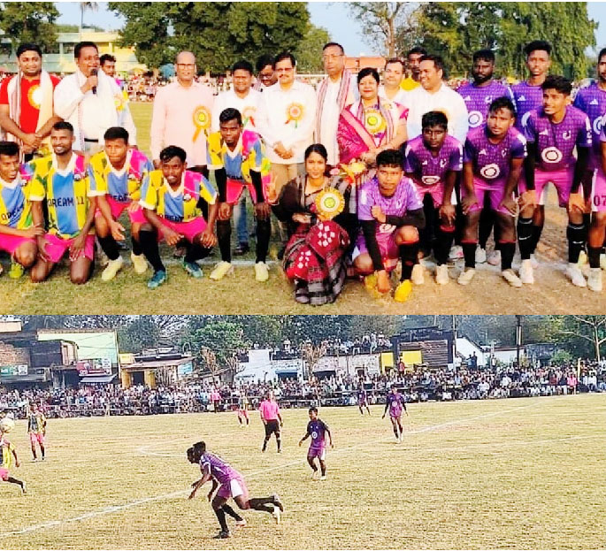 ଓଡ଼ଗାଁ,୨୩।୧୨(ଶ୍ରୀକାନ୍ତ କୁମାର ମିଶ୍ର): ନୟାଗଡ଼ ଜିଲ୍ଲା ଓଡ଼ଗାଁ ବ୍ଳକ ଶରଣକୁଳ ନାରାୟଣ ଉଚ୍ଚ ବିଦ୍ୟାଳୟ ପଡ଼ିଆରେ ଲଡ଼ୁକେଶ ଆଥଲେଟିକ ଆସୋସିଏସନ, ଶରଣକୁଳ ଆନୁକୂଲ୍ୟରେ ଆୟୋଜିତ ୬୪ତମ ସର୍ବଭାରତୀୟ ଫୁଟବଲ ଟୁର୍ନାମେଣ୍ଟର ରବିବାର ଅନୁଷ୍ଠିତ ଫାଇନାଲ ମ୍ୟାଚରେ ଗଣ୍ଡରପୁର ଫୁଟବଲ କ୍ଲବ, ଭୁବନେଶ୍ବର ଟାଇ ବ୍ରେକରରେ ୟୁନାଇଟେଡ ସ୍କୋର୍ଟ୍ କ୍ଲବ, ବରଗଡ଼କୁ ୫-୪ ଗୋଲରେ ବିଜୟ ହାସଲ କରି ଚାମ୍ପିୟାନ ଆଖ୍ୟା ହାସଲ କରିଥିଲେ । ଫାଇନାଲ ମ୍ୟାଚକୁ ଉପଭୋଗ କରିବା ପାଇଁ ପଡ଼ିଆରେ ପ୍ରାୟ ଦଶ ହଜାରରୁ ଉର୍ଦ୍ଧ୍ବ ଦର୍ଶକଙ୍କ ଉପସ୍ଥିତ ରହିଥିଲା । ଅପରାହ୍ନ ୩ଟାରେ ଆରମ୍ଭ ହୋଇଥିବା ପ୍ରଥମାର୍ଦ୍ଧ ଖେଳ ସଂଘର୍ଷପୂର୍ଣ୍ଣ ରହିଥିଲେ ମଧ୍ୟ କେହି କାହାରିକୁ ଗୋଲସ୍କୋର କରିବାରେ ସକ୍ଷମ ହୋଇନଥିଲେ । ଦ୍ବିତୀୟାର୍ଦ୍ଧ ଖେଳର ୧୯ ତମ ମିନିଟରେ ଗଣ୍ଡରପୁପୁର ୧୧ନଂ ଜର୍ସି ଖେଳାଳି ଏକ ଗୋଲଦେଇ ଦଳକୁ ୧-୦ ଆଗୁଆ ରଖୁଥିଲା । ପରେ ବରଗଡ଼ ଆକ୍ରମଣାତ୍ମକ ଖେଳି ୨୮ତମ ମିନିଟରେ ୯ନଂ ଜର୍ସି ଖେଳାଳି ସୁଶୀଲ ପଢିଆରି ଏକ ଗୋଲ ସ୍କୋର କରି ୩୫ତମ ମିନିଟରେ ୨୬ନଂ ଜର୍ସି ଖେଳାଳି କ୍ରିଷ୍ଣା ହରିପାଳଙ୍କ ଗୋଲରେ ଦଳ ୨-୧ ରେ ଆଗୁଆ ଥିଲା । କିନ୍ତୁ ଖେଳର ଶେଷ ମିନିଟରେ ଗଣ୍ଡରପୁର ଦଳର ୮ ନଂ ଖେଳାଳି ଅରବିନ ଲାକ୍ରାଙ୍କ ଗୋଲ ଦଳକୁ ବରାବର ସ୍ଥିତିକୁ ନେଇଥିଲା। ପରେ ଟାଇ ବ୍ରେକରରେ ଗଣ୍ଡରପୁର ଦଳ ୫-୪ ଗୋଲରେ ବିଜୟୀ ହୋଇଥିଲା। ପରେ ଆଜିର ପୁରସ୍କାର ବିତରଣ ଉତ୍ସବରେ ଅନୁଷ୍ଠାନର ସଭାପତି ସତ୍ୟ ନାରାୟଣ ପ୍ରଧାନଙ୍କ ସହିତ ମୁଖ୍ୟଅତିଥି ଦଶପଲ୍ଲା ବିଧାୟକ ରମେଶ ଚନ୍ଦ୍ର ବେହେରା, ମୁଖ୍ୟବକ୍ତା ଭାବେ ଭାପୁର ବ୍ଲକ ଉପାଧ୍ୟକ୍ଷ ବେଣୁଧର ପ୍ରଧାନ, ସମ୍ମାନିତ ଅତିଥ୍ ଭାବେ ଓଡିଶା ରାଜ୍ୟ ସମବାୟ ବ୍ୟାଙ୍କ ନିର୍ଦେଶକ ତଥା ଶିଖରପୁର ସରପଞ୍ଚ ସନ୍ୟାସୀ ପ୍ରଧାନ, ଶରଣକୂଳ ଜିଲା ପରିଷଦ ସଭ୍ୟା ଚିନ୍ମୟୀ ଦାଶ, ଗୋଡିପଡା ଜିଲା ପରିଷଦ ସଭ୍ୟା ସଂଯୁକ୍ତା ପଢିଆରୀ, ସାମାଜିକ କର୍ମୀ ମନସୁର ବକ୍ସ, ସାମାଜିକ କର୍ମୀ ପ୍ରଫୁଲ ନାଏକ, ସାମାଜିକ କର୍ମୀ ତ୍ରିନାଥ ବିଶ୍ବାଳ ଆଦି ଯୋଗଦେଇ ପ୍ରଦୀପ ପ୍ରଜ୍ବଳନ ପରେ ମଧ୍ୟାନରରେ ଅନୁଷ୍ଠାନର କାର୍ଯ୍ୟକର୍ତ୍ତାଙ୍କ ସହ ପଡିଆରେ ଦୁଇଦଳ ଖେଳାଳୀ ଓ ରେଫେରୀଙ୍କ ସହିତ କରମର୍ଦ୍ଦନ ଓ ପରିଚୟ ଆଦାନପ୍ରଦାନ ସହ ସେମାନଙ୍କୁ ଉତ୍ସାହିତ କରିଥିଲେ। ପରେ ଆତସବାଜୀ ପ୍ରଦର୍ଶନ ସହ ପୁରସ୍କାର ବିତରଣୀ ଉତ୍ସବରେ ଅନୁଷ୍ଠାନ ସମ୍ପାଦକ ରବୀନ୍ଦ୍ର କୁମାର ଚୌଧୁରୀ ବିବରଣୀ ପାଠ କରିଥିଲେ। ପରେ ଉପସ୍ଥିତ ଅତିଥି ଗଣ ନିଜର ଅଭିଭାଷଣ ପ୍ରଦାନ କରିଥିଲେ । ପରେ ଚମ୍ପିୟାନ ଦଳ ଗଣ୍ଡରପୁରକୁ ଟ୍ରଫି ସହ ତିରିଶ ହଜାର ଟଙ୍କା ଓ ଉପବିଜେତା ବରଗଡ଼କୁ ଟ୍ରଫି ସହ ୨୦ହଜାର ଟଙ୍କା ଏବଂ ଆଜିର ଶ୍ରେଷ୍ଠ ଖେଳାଳି ଅଶ୍ବିନ ଡୁମଙ୍କୁ ଟ୍ରଫି ସହ ଏକ ହଜାର ଟଙ୍କା ଏବଂ ଟୁର୍ନାମେଣ୍ଟର ଶ୍ରେଷ୍ଠ ଖେଳାଳି ଭାବେ ବରଗଡ଼ର ସୁନିଲ ପଢିହାରିଙ୍କୁ ଟ୍ରଫି ସହ ୨ ହଜାର ଟଙ୍କା ପୁରସ୍କାର ରାଶି ପ୍ରଦାନ କରିଥିଲେ । ମୁଖ୍ୟ ରେଫରି ଭାବେ ରାଜୁ ମାହାନ୍ତି ଖେଳକୁ ପରିଚାଳନା କରିଥିବା ବେଳେ ଲାଇନରେ ସହାୟତା କରିଥିଲେ ପ୍ରସନ୍ନ କୁମାର ନାୟକ, ପ୍ରିୟବ୍ରତ ସେନାପତି ଓ ରେଫରି ଭାବେ ଜଗନ୍ନାଥ ପରିଡ଼ା ଖେଳକୁ ପରିଚାଳନା ଏହି କାର୍ଯ୍ୟକ୍ରମରେ ସମସ୍ତ ସଦସ୍ୟ ମାନଙ୍କ ସହ ବହୁ ସ୍ବେଛାସେବୀ ଯୋଗଦେଇ ସହଯୋଗ କରିଥିଲେ ।