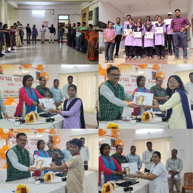 ଏଥିରେ କୃତି ପ୍ରତିଯୋଗୀ ରଙ୍ଗଲି ରେ ସୁଭଦ୍ରା ଭୂୟାଁ , ରାଜଶ୍ରୀ ସ୍ୱାଇଁ , ଲକ୍ଷ୍ମୀ ପ୍ରିୟା ରାଉତ , ଚିତ୍ରାଙ୍କନରେ ସ୍ୱର୍ଣ୍ଣ ଲକ୍ଷ୍ମୀ ବେହେରା , ସୁଧାଂଶୁ ଶେଖର ବିଷୋୟୀ , କବିତାରେ ସତ୍ୟଵ୍ରତ ଜେନା , ସ୍ନେହା ବେହେରା , ସନ୍ଧ୍ୟାରାଣୀ ପଣ୍ଡା , ସୁନାନୀ ହର୍ଷ ପ୍ରମୁଖ ଛାତ୍ରଛାତ୍ରଙ୍କୁ ପୁରସ୍କୃତ କରାଯାଇଥିଲା। ଶେଷରେ ଶୁଭ୍ରାଂଶୁ ଶେଖର ପଟ୍ଟନାୟକ ଧନ୍ୟବାଦ୍ ଅର୍ପଣ କରିଥିଲେ। ପରେ ପରେ ଦସ୍ତଖତ ଅଭିଯାନ ସହ ସମ୍ବିଧାନ ପ୍ରସ୍ତାବନା ଶପଥ ପାଠ କରାଯାଇଥିଲା। ଏହି କାର୍ଯ୍ୟକ୍ରମରେ ଜିଲ୍ଲା ଜଳ ଓ ପରିମଳର ସଂଯୋଜକଙ୍କ ସମେତ ବହୁ କର୍ମଚାରୀ ସହଯୋଗ କରିଥିଲେ।