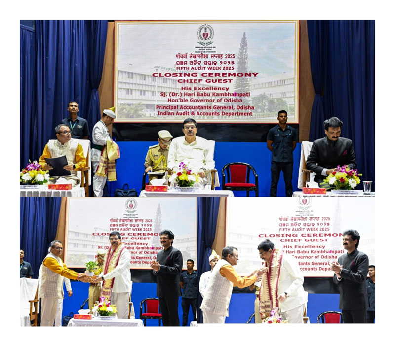 ଭୁବନେଶ୍ୱରର ତା 28/11 ସ୍ଥାନୀୟ ମହାଲେଖାକାର କାର୍ଯ୍ୟାଳୟ ଆନୁକୂଲ୍ୟରେ ପଞ୍ଚମ ଅଡିଟ ସପ୍ତାହ ଉଦଯାପନୀ ସମାରୋହ ଆଜି ଜୟଦେବ ଭବନଠାରେ ଅନୁଷ୍ଠିତ ହୋଇଯାଇଛି l ଏହି ଉଦଯାପନୀ ସମାରୋହରେ ମାନ୍ୟବର ରାଜ୍ୟପାଳ ଡକ୍ଟର ହରି ବାବୁ କାମ୍ବମପତି ମୁଖ୍ୟ ଅତିଥିଭାବେ ଯୋଗଦେଇ ସଭାକୁ ସମ୍ବୋଧିତ କରିଥିଲେ। ଅନ୍ୟମାନଙ୍କ ମଧ୍ୟରେ ପ୍ରଧାନ ମହାଲେଖାକାର ଡି.ସାହୁ, ସୁବୁ. ଆର, ମହାଲେଖାକାର ଅତୁଲ ପ୍ରକାଶ ଉପସ୍ଥିତ ଥିଲେ l ପ୍ରାରମ୍ଭରେ ଜାତୀୟ ସଂଗୀତ ଓ ପ୍ରଦୀପ ପ୍ରଜ୍ବଳନ ସହ ସଭା କାର୍ଯ୍ୟକ୍ରମ ଅନୁଷ୍ଠିତ ହୋଇଥିଲା l ପ୍ରଧାନ ମହଲେଖାକାର ଶ୍ରୀ ଡି. ସାହୁ ସ୍ୱାଗତ ଭାଷଣ ପ୍ରଦାନ କରିବା ସହ ଓଡିଶା ଏଜି ବିଭିନ୍ନ ସରକାରୀ କାର୍ଯ୍ୟକୁ ସରଳ, ସୁଗମ ଓ ଶୀଘ୍ର ସମ୍ପାଦନ ପାଇଁ ଉନ୍ନତ କୌଶଳ ଯଥା ନୂତନ ସଫ୍ଟୱେୟାର ପ୍ରସ୍ତୁତି ଓ ଏ ଆଇ ପ୍ରଯୁକ୍ତିବିଦ୍ୟା ଉପଯୋଗରେ ନିର୍ଦିଷ୍ଟ ସମୟ ପୂର୍ବରୁ କାର୍ଯ୍ୟ ସମ୍ପାଦନ କରି ଦେଶରେ ପ୍ରଶଂସା ଭାଜନ ହୋଇପାରିଛି ପ୍ରକାଶ କରିଥିଲେ । ଦେଶର ବିଭିନ୍ନ ଏଜି କାର୍ଯ୍ୟାଳୟରୁ ଅଧିକାରୀମାନେ ଏହି ନୂତନ କୌଶଳ ତାଲିମ ନେବାପାଇଁ ଓଡିଶା ଏଜିକୁ ଆସୁଛନ୍ତି ବୋଲି ପ୍ରକାଶ କରିଥିଲେ l