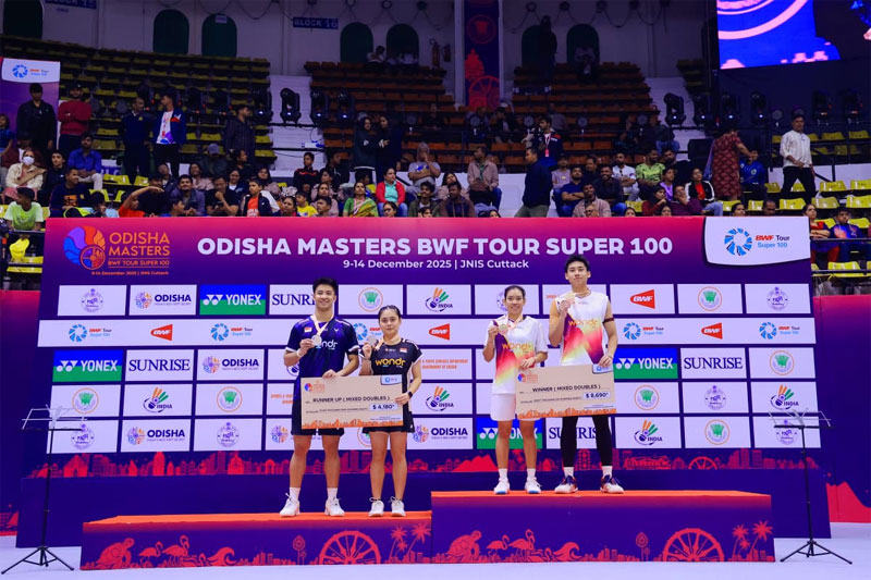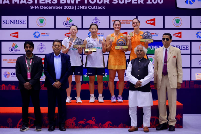 କଟକ/୧୪ ଡିସେମ୍ବର, ୨୦୨୫: କଟକ ସ୍ଥିତ ଜବାହର ଲାଲ ନେହେରୁ ଇଣ୍ଡୋର ଷ୍ଟାଡ଼ିୟମ୍ ଠାରେ ଅନ୍ତର୍ଜାତୀୟ ବ୍ୟାଡ଼ମିଣ୍ଟନ ପ୍ରତିଯୋଗିତା "ଓଡିଶା ମାଷ୍ଟର୍ସ ୨୦୨୫" ଉଦ୍ଯାପିତ ହୋଇଯାଇଛି।ଡିସେମ୍ବର ୯ ତାରିଖରୁ ଆରମ୍ଭ ହୋଇଥିବା ଏହି ଅନ୍ତର୍ଜାତୀୟ ପ୍ରତିଯୋଗିତାର ପ୍ରତ୍ୟେକ ବର୍ଗର ଫାଇନାଲ ମ୍ୟାଚ୍ ଆଜି ଜବାହର ଲାଲ ନେହେରୁ ଇଣ୍ଡୋର ଷ୍ଟାଡ଼ିୟମ୍ ଠାରେ ଅନୁଷ୍ଠିତ ହୋଇଥିଲା।
