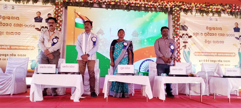 ରାୟଗଡ଼ା:- (ସରୋଜ କୁମାର ସାହୁ) ଜିଲ୍ଲାସ୍ତରୀୟ ମାତ୍ସ୍ୟ ଓ ପ୍ରାଣୀସମ୍ପଦ ମେଳା ଆଜି ଉଦଯାପିତ ହୋଇଛି l ଏଥିରେ ମୁଖ୍ୟ ଅତିଥି ଭାବେ ଅଧ୍ୟକ୍ଷା ଜିଲ୍ଲାପରିଷଦ ରାୟଗଡ, ସୁଶ୍ରୀ ସରସ୍ବତୀ ମାଝୀ, ଯୋଗଦେଇ ସମବେତ ଚାଷୀମାନଙ୍କୁ ପ୍ରାଣୀ ସମ୍ପଦ ଓ ମତ୍ସ୍ଯ ଚାଷ ସମ୍ପର୍କରେ ବୁଝାଇଥିଲେ l ସମ୍ମାନିତ ଅତିଥି ଅତିରିକ୍ତ ଜିଲ୍ଲାପାଳ ଆରୀ ନବୀନ ଚଦ୍ର ନାଏକ ଯୋଗଦେଇ ସରକାରଙ୍କ ବିଭିନ୍ନ ଯୋଜନା ଉପରେ ଦିଆଯାଉଥିବା ରିହାତି ସୁବିଧା ନେବା ପlଇଁ ଚାଷୀଙ୍କୁ ଆହ୍ୱାନ କରିଥିଲେ l