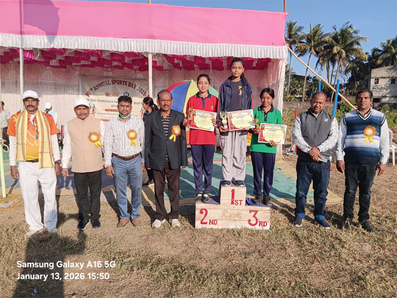 କେନ୍ଦୁଝର,ତା୧୩/୧- ପିଏମଶ୍ରୀ ଧନୁର୍ଜ୍ଜୟ ନାରାୟଣ ସରକାରୀ ଉଚ୍ଚ ବିଦ୍ୟାଳୟର ୯୦ତମ ବାର୍ଷିକ କ୍ରୀଡା ଉତ୍ସବ- ୨୦୨୫-୨୬ ବିଦ୍ୟାଳୟର କ୍ରୀଡା ପ୍ରାନ୍ତରେ ଦୁଇଦିନ ଧରି ଅନୁଷ୍ଠିତ ହୋଇଯାଇଛି। ସୋମବାର ଦିବା ୧୧ ଘଟିକା ସମୟରେ କେନ୍ଦୁଝରର ଅତିରିକ୍ତ ଜିଲ୍ଲା ଶିକ୍ଷା ଅଧିକାରୀ ଶ୍ରୀଯୁକ୍ତ ଶ୍ରୀକାନ୍ତ ବେହେରା, ମୁଖ୍ୟ ଅତିଥି ଭାବରେ ଯୋଗଦାନ କରି ପତାକା ଉତ୍ତୋଳନ ପୂର୍ବକ କ୍ରୀଡାର ଶୁଭ ଉଦଘାଟନ କରିଥିଲେ। ସମ୍ମାନିତ ଅତିଥ୍ ଭାବେ କେନ୍ଦୁଝର ଶିକ୍ଷା ଜିଲ୍ଲା କ୍ରୀଡା ଅଧିକାରୀ ରାମକୃଷ୍ଣ ବେହେରା ଓ ତାଙ୍କ ସହିତ ସଂକୁଳ ସ୍ତରୀୟ ସଂଯୋଜକ ଶ୍ରୀମତୀ ମୋନାଲିସା ଶତପଥୀ, ମୋଚିବନ୍ଧ ଉକ୍ତ କାର୍ଯ୍ୟକ୍ରମରେ ଯୋଗଦାନ କରି ଛାତ୍ରଛାତ୍ରୀ ମାନଙ୍କୁ ଉତ୍ସାହିତ କରିଥିଲେ। ଅତିରିକ୍ତ ଜିଲ୍ଲା ଶିକ୍ଷା ଅଧିକାରୀ କ୍ରୀଡାର ଉପାଦେୟତା ସହ କ୍ରୀଡା ମନସ୍କ ହେବା ପାଇଁ ଛାତ୍ରଛାତ୍ରୀ ମାନଙ୍କୁ ଅନୁପ୍ରାଣିତ କରିଥିଲେ। ଏହି କ୍ରୀଡା ପ୍ରତିଯୋଗିତାରେ ୩୮୦ ଜଣ ଛାତ୍ରଛାତ୍ରୀ ଅଂଶଗ୍ରହଣ କରି ନିଜର ଦକ୍ଷତା ପ୍ରଦର୍ଶନ କରିଥିଲେ। ଏହି କାର୍ଯ୍ୟକ୍ରମରେ ବିଦ୍ୟଳୟର ପ୍ରଧାନ ଶିକ୍ଷକ ଶ୍ରୀଯୁକ୍ତ ପ୍ରବୀର କୁମାର ମହାନ୍ତି ସଭା ପରିଚାଳନା କରିଥିବା ବେଳେ ସହକାରୀ ଶିକ୍ଷୟିତ୍ରୀ ସୁଶ୍ରୀ ତରୁଶୋଭାମୟୀ ମୁଦୁଲି ଧନ୍ୟବାଦ ଅର୍ପଣ କରିଥିଲେ। ଏହି ଉତ୍ସବରେ ବିଚାରକ ଭାବେ ବିଦ୍ୟାଳୟର ସମସ୍ତ ଶିକ୍ଷକ ଶିକ୍ଷୟତ୍ରୀ ସୁଚିନ୍ତିତ ବିଚାର ପୂର୍ବକ କୃତୀ ପ୍ରତିଯୋଗୀ ମାନଙ୍କୁ ଚୟନ କରିଥିଲେ। ବିଦ୍ୟାଳୟର ସମସ୍ତ ଶିକ୍ଷା କର୍ମଚାରୀ ଉକ୍ତ କାର୍ଯ୍ୟକ୍ରମରେ ଅକୁଣ୍ଠ ଚିତ୍ତରେ ସହଯୋଗ କରିଥିଲେ। ଆଜି ମଙ୍ଗଳବାର ଅପରାହ୍ନରେ ପିଏମ୍ ଶ୍ରୀ ବିଦ୍ୟାଳୟର ବାର୍ଷିକ କ୍ରୀଡା ପ୍ରଧାନ ଶିକ୍ଷକଙ୍କ ସଭାପତିତ୍ୱରେ ଉଦଯାପନୀ କାର୍ଯ୍ୟକ୍ରମ ଆରମ୍ଭ ହୋଇଥିଲା। ରଙ୍ଗlରଙ୍ଗ ସାଂସ୍କୃତିକ କାର୍ଯ୍ୟକ୍ରମ ମଧ୍ୟରେ ଅନୁଷ୍ଠିତ ଏହି ଉଦଯାପନୀ ଉତ୍ସବରେ କେନ୍ଦୁଝର ଜିଲ୍ଲାର ଅତିରିକ୍ତ ଶିକ୍ଷା ଅଧିକାରୀ ଶ୍ରୀ ସତ୍ୟନାରାୟଣ ମହାନ୍ତ ମୁଖ୍ୟ ଅତିଥି ରୂପେ ଯୋଗଦେଇ ଖେଳାଳି ମାନଙ୍କୁ ଉତ୍ସାହିତ କରିଥିଲେ।