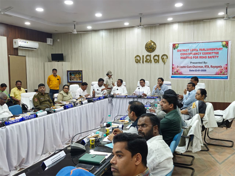 ରାୟଗଡ଼, ୨୩/୦୧: ରାୟଗଡ଼ା ଜିଲ୍ଲାରେ ରାସ୍ତା ଦୁର୍ଘଟଣା ହ୍ରାସ କରିବା ପାଇଁ ଜିଲ୍ଲାସ୍ତରୀୟ ସଂସଦ କ୍ଷେତ୍ର ସଡକ ସୁରକ୍ଷା କମିଟି ବୈଠକ ଆଜି ଶ୍ରୀ ସପ୍ତଗିରି ଉଲ୍ଲକା, ମାନ୍ୟବର ସାଂସଦଙ୍କ ଅଧ୍ୟକ୍ଷତରେ ସ୍ଥାନୀୟ ଜିଲ୍ଳା ପରିଷଦ ସମ୍ମିଳନୀ କକ୍ଷରେ ଆୟୋଜିତ ହୋଇଥିଲା।