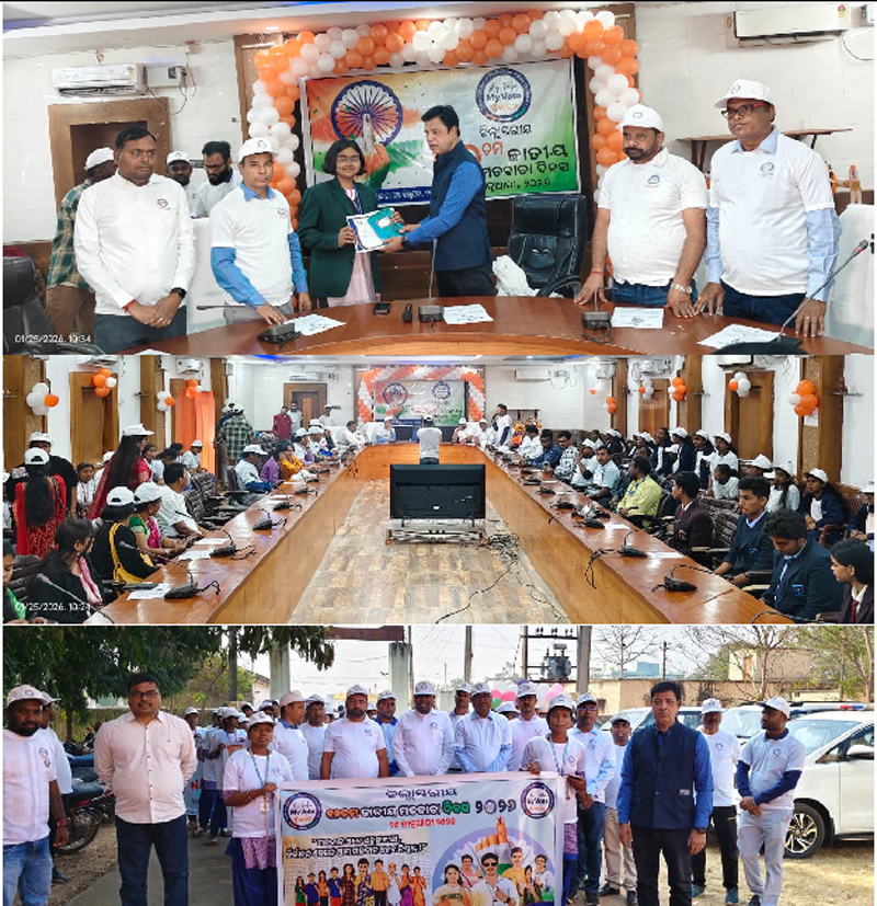 ନବରଙ୍ଗପୁର ତା ୨୫.୧.୨୦୨୬: ଅଶୋକ ସାହୁ,ସ୍ଥାନୀୟ ମିଶନ ଶକ୍ତି ସମ୍ମିଳନୀ ଗୃହରେ ଜିଲ୍ଲାପାଳ ଡ଼ ମହେଶ୍ବର ସ୍ୱାଇଁ ଙ୍କ ଅଧ୍ୟକ୍ଷତା ରେ ୧୬ ତମ ଜାତୀୟ ମତଦାତା ଦିବସ ପାଳିତ ହୋଇଯାଇଅଛି।ଏହି ବୈଠକରେ ଆରକ୍ଷୀ ଅଧିକ୍ଷକ ମଡକର ସନ୍ଦୀପ ସମ୍ପଦ,ଅତିରିକ୍ତ ଜିଲ୍ଲାପାଳ (ସାଧାରଣ) ତପନ କୁମାର ଖୁଣ୍ଟିଆ,ଅତିରିକ୍ତ ଜିଲ୍ଲାପାଳ (ରାଜସ୍ୱ) ବିଶ୍ୱଜିତ୍ ଚନ୍ଦ୍ର ବର୍ମନ୍ ,ମୁଖ୍ୟ ଉନ୍ନୟନ ଅଧିକାରୀ ଜିଲ୍ଲା ପରିଷଦ ବିରଞ୍ଚି ନାରାୟଣ ଦରୱାନ,ଉପ ଜିଲ୍ଲାପାଳ ପ୍ରକାଶ କୁମାର ମିଶ୍ର ପ୍ରମୁଖ ଉପସ୍ଥିତ ଥିଲେ। ଏହି ଅବସରରେ ସକାଳ ୯.୦୦ ଘ ସମୟରେ ସ୍ଥାନୀୟ ଉପ ଜିଲ୍ଲାପାଳଙ୍କ କାର୍ଯ୍ୟାଳୟ ଠାରୁ ମିଶନ ଶକ୍ତି ସମ୍ମିଳନୀ ଗୃହ ପର୍ଯ୍ୟନ୍ତ ଏକ ସଚେତନତା ଶୋଭାଯାତ୍ରା ଅନୁଷ୍ଠିତ ହୋଇଥିଲା।ବିଭିନ୍ନ ବିଦ୍ୟାଳୟ ଓ ମହାବିଦ୍ୟାଳୟ ର ଛାତ୍ର ଛାତ୍ରୀ,ଜିଲ୍ଲା ସ୍ତରୀୟ ଅଧିକାରୀ,ବି ଏଲ୍ ଓ,ନିର୍ବାଚନ କାର୍ଯ୍ୟଳୟ ର କର୍ମଚାରୀ ସାମିଲ ହୋଇଥିଲେ।ଜିଲ୍ଲାପାଳ ଏବଂ ଆରକ୍ଷୀ ଅଧିକ୍ଷକ ଏହି ଶୋଭାଯାତ୍ରାକୁ ପତାକା ଦେଖାଇ ଶୁଭାରମ୍ଭ କରିଥିଲେ।ଜାତୀୟ ମତଦାତା ଦିବସ ଉପଲକ୍ଷେ "ମୋ ଭାରତ ମୋ ଭୋଟ" ବିଷୟ ଉପରେ ପ୍ରବନ୍ଧ, ବିତର୍କ, କୁଇଜ୍ ଭଳି ବିଭିନ୍ନ ବର୍ଗର ପ୍ରତିଯୋଗିତାରେ ଉତ୍ତୀର୍ଣ୍ଣ ଛାତ୍ରଛାତ୍ରୀମାନଙ୍କୁ ସମ୍ମାନିତ କରାଗଲା। ଏହା ବ୍ୟତୀତ ୪ ଟି ନିର୍ବାଚନମଣ୍ଡଳୀର ଭଲ ପ୍ରଦର୍ଶନ କରିଥିବା ବି ଏଲ ଓ ଏବଂ ବି ଏଲ ଓ ପର୍ଯ୍ୟବେକ୍ଷକମାନଙ୍କୁ ଏବଂ ସମସ୍ତ ଇ ଆର ଓଏବଂ ଏ ଇ ଆର୍ ଓ ମାନଙ୍କୁ ପ୍ରଶଂସା ପତ୍ର ପ୍ରଦାନ କରାଗଲା।