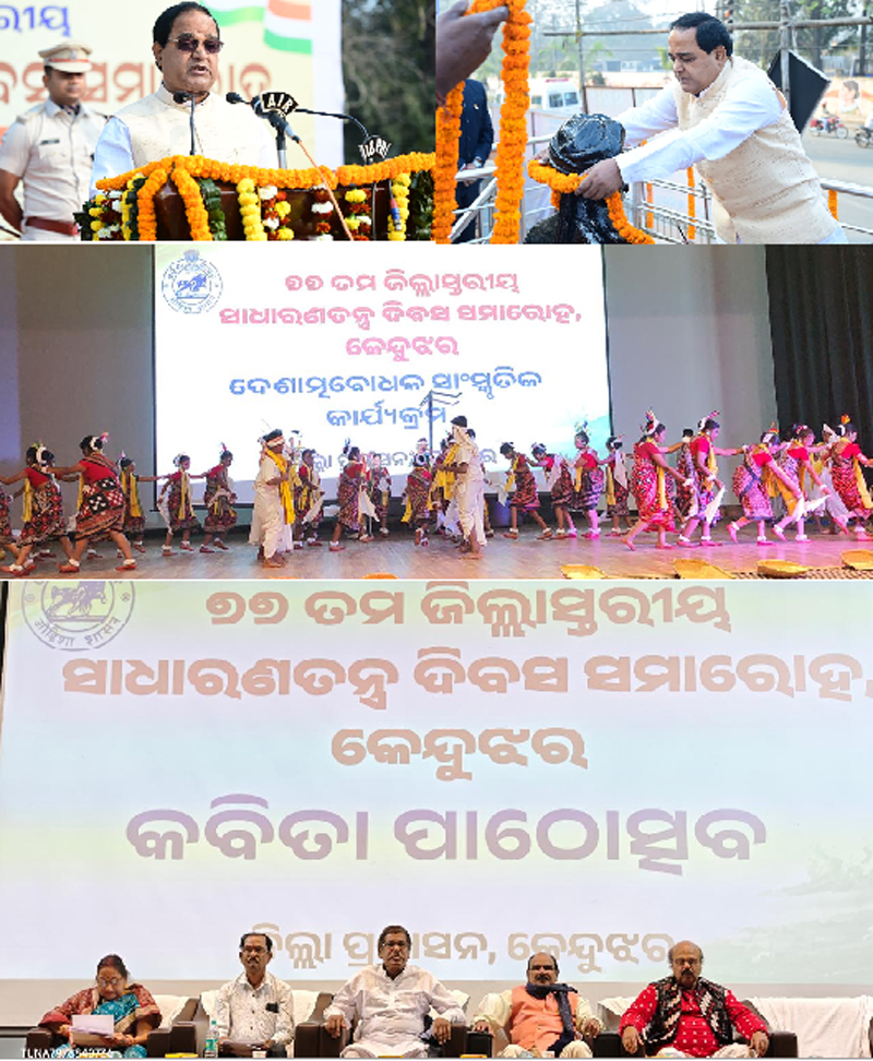 କେନ୍ଦୁଝର,ତା୨୬/୧-୭୭ତମ ସାଧାରଣତନ୍ତ୍ର ଦିବସ ଚଳିତ ଜାନୁଆରୀ ୨୬ ତାରିଖରେ କେନ୍ଦୁଝର ଜିଲ୍ଲା ସଦର ମହକୁମାରେ ମହାସମାରୋହରେ ପାଳିତ ହୋଇଯାଇଛି । ଏହି ଅବସରରେ କେନ୍ଦୁଝର ଷ୍ଟାଡିୟମ୍ଠାରେ ମୁଖ୍ୟ ଅତିଥି ଭାବେ ମାନ୍ୟବର ମନ୍ତ୍ରୀ ଖାଦ୍ୟ ଯୋଗାଣ ଓ ଖାଉଟି କଲ୍ୟାଣ ଏବଂ ବିଜ୍ଞାନ ଓ ବୈଷୟିକ ବିଭାଗ ଶ୍ରୀ କୃଷ୍ଣଚନ୍ଦ୍ର ପାତ୍ର ଜାତୀୟ ପତାକା ଉତୋଳନ କରିବା ସହ ସମ୍ମିଳିତ ଆନୁଷ୍ଠାନିକ ପ୍ୟାରେଡ୍ରେ ଅଭିବାଦନ ଗ୍ରହଣ କରିଥିଲେ । ନିଜ ଅଭିଭାଷଣରେ ମନ୍ତ୍ରୀ ଶ୍ରୀ ପାତ୍ର ବିକଶିତ ଭାରତ ଓ ବିକଶିତ ଓଡିଶା ଆମର ସ୍ୱପ୍ନ ଓ ସଂକଳ୍ପ ହେଉ ବୋଲି ଆହ୍ୱାନ ଜଣାଇଥିଲେ । ସମସ୍ତେ ଜଣେ ଜଣେ ଭଲ ନାଗରିକ ହେବା ସହ ଦେଶ ପ୍ରତି ନିଜର କର୍ତବ୍ୟ ପାଳନ କରିବାକୁ ଆହ୍ୱାନ ଜଣାଇଥିଲେ । ଉଦ୍ବୋଧନ ଛଳରେ ମନ୍ତ୍ରୀ ଶ୍ରୀ ପାତ୍ର ଦେଶର ସ୍ୱାଧୀନତା ପାଇଁ ଅସୀମ ତ୍ୟାଗ କରିଥିବା ଏବଂ ବଳିଦାନ ଦେଇଥିବା ସଂଗ୍ରାମୀ ଓ ଶହୀଦମାନଙ୍କୁ ଶ୍ରଦ୍ଧାଞ୍ଜଳି ଜଣାଇ ସେମାନଙ୍କ ଆଦର୍ଶରେ ଅନୁପ୍ରାଣିତ ହୋଇ ସମାଜ ଓ ଦେଶ ଗଠନରେ ବ୍ରତୀ ହେବାକୁ ଆହ୍ୱାନ ଜଣାଇଥିଲେ। କେନ୍ଦୁଝର ଜିଲ୍ଲାକୁ ବୀର ମାଟି ଭାବେ ଅଭିହିତ କରି ସ୍ୱାଧୀନତା ସଂଗ୍ରାମ କାଳରେ ସଂଗ୍ରାମୀମାନଙ୍କର ଉଚ୍ଚ ଆଦର୍ଶ ଆମ ପାଇଁ ପ୍ରେରଣା ସାଜିଛି ବୋଲି କହିଥିଲେ । ରାଜନୈତିକ ସ୍ୱାଧୀନତା, ସାମାଜିକ ନ୍ୟାୟ, ଗଣତାନ୍ତ୍ରିକ ମୂଲ୍ୟବୋଧ, ଧର୍ମ ନିରପେକ୍ଷତା, ବର୍ଣ୍ଣବୈଷମ୍ୟ ତଥା ତାରତମ୍ୟମୁକ୍ତ ସମାଜ ପ୍ରତିଷ୍ଠା ଓ ମାନବାଧିକାର ପ୍ରତି ସମ୍ମାନ ପ୍ରଦର୍ଶନ ଭାରତୀୟ ସମ୍ବିଧାନର ବିଶେଷତ୍ୱ । ଗଣତାନ୍ତ୍ରିକ ମୂଲ୍ୟବୋଧ ପ୍ରତି ବିଶ୍ୱାସ ରଖି ନିଜଠାରେ ଆତ୍ମବିଶ୍ୱାସ ଆଣିବା ସାଧାରଣତନ୍ତ୍ର ଦିବସର ଅନୁଚିନ୍ତା ବୋଲି ମନ୍ତ୍ରୀ ଶ୍ରୀ ପାତ୍ର କହିଥିଲେ। ଓଡିଶାକୁ ଦେଶର ଏକ ପ୍ରମୁଖ ରାଜ୍ୟରେ ପରିଣତ କରିବା ପାଇଁ ମାନ୍ୟବର ମୁଖ୍ୟମନ୍ତ୍ରୀ ମୋହନ ଚରଣ ମାଝୀଙ୍କର ଉଦ୍ୟମ ଜାରି ରହିଛି ବୋଲି କହିବା ସହିତ ସରକାରଙ୍କ ଦ୍ୱାରା ପ୍ରବର୍ତିତ ବିଭିନ୍ନ ଉନ୍ନୟନ ଓ କଲ୍ୟାଣମୂଳକ ଜନହିତକର ଯୋଜନା ଓ କାର୍ଯ୍ୟକ୍ରମ ସଂପର୍କରେ ଅବତାରଣା କରିଥିଲେ । ସମସ୍ତେ ମିଳିମିଶି କେନ୍ଦୁଝର ଜିଲ୍ଲା ତଥା ଓଡିଶାର ପ୍ରଗତିକୁ ତ୍ୱରାନ୍ୱତ କରିବା ସହ ଏହାକୁ ଏକ ଆଦର୍ଶ ଜିଲ୍ଲା ଭାବେ ଗଢି ତୋଳିବାକୁ ସମସ୍ତଙ୍କ ସହଯୋଗ କାମନା କରିଥିଲେ। ଜିଲ୍ଲାରେ ସରକାରଙ୍କ ବିଭିନ୍ନ ଉନ୍ନୟନମୂଳକ ପ୍ରକଳ୍ପ ଓ ଯୋଜନାର ସଠିକ ପରିଚାଳନା ହେଉଥିବାରୁ ସନ୍ତୋଷ ବ୍ୟକ୍ତ କରିଥିଲେ। ଏହି ଅବସରରେ ଆୟୋଜିତ ସମ୍ମିଳିତ ଆନୁଷ୍ଠାନିକ ପ୍ୟାରେଡ୍ ରେ ୫୩ଟି ଦଳ ଅଂଶଗ୍ରହଣ କରି ଚିତାକର୍ଷକ ମାର୍ଚ୍ଚପାଷ୍ଟ୍ କରିଥିଲେ ଏବଂ ମୁଖ୍ୟ ଅତିଥି ମନ୍ତ୍ରୀ କୃଷ୍ଣଚନ୍ଦ୍ର ପାତ୍ର ଅଭିବାଦନ ଗ୍ରହଣ କରିଥିଲେ । ଏହି କାର୍ଯ୍ୟକ୍ରମରେ ୮ଟି ବିଭାଗ ତରଫରୁ ପ୍ରଜ୍ଞାପନ ମେଢ ପ୍ରଦର୍ଶିତ ହୋଇଥିଲା ଏବଂ ୪ଟି ଶିକ୍ଷାନୁଷ୍ଠାନ ତରଫରୁ ଦୋଶାତ୍ମବୋଧକ ସାଂସ୍କୃତିକ କାର୍ଯ୍ୟକ୍ରମ ଏବଂ କେନ୍ଦୁଝର ଜିଲ୍ଲା ଆମେଚର୍ ତାଇକୋଣ୍ଡ ଆସୋସିଏସନ୍ ତରଫରୁ ତାଇକୋଣ୍ଡ ପ୍ରଦର୍ଶନ କରାଯାଇଥିଲା ।