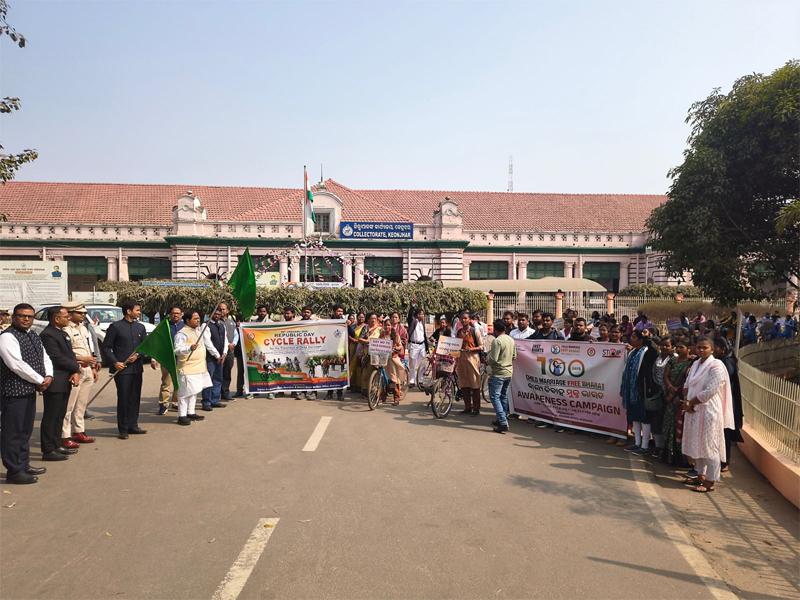 କେନ୍ଦୁଝର,ତା୨୮/୧- ୭୭ତମ ଗଣତନ୍ତ୍ର ଦିବସ ପାଳନ ଅବସରରେ କେନ୍ଦୁଝର ଜିଲ୍ଲାର ଜିଲ୍ଲାପାଳ କାର୍ଯ୍ୟାଳୟଠାରୁ ବାଲ୍ୟ ବିବାହ ନିବାରଣ ନିମନ୍ତେ ଏକ ସାଇକେଲ ରାଲି ଆୟୋଜନ କରାଯାଇଥିଲା। ମାନ୍ୟବର ଖାଦ୍ୟ ଯୋଗାଣ ମନ୍ତ୍ରୀ ଶ୍ରୀ କୃଷ୍ଣ ଚନ୍ଦ୍ର ପାତ୍ର ଏବଂ ଜିଲ୍ଲାପାଳ ଶ୍ରୀ ବିଶାଳ ସିଂହ ପତାକା ଦେଖାଇ ଏହି ରାଲିର ଶୁଭାରମ୍ଭ କରିଥିଲେ। ଅଂଶଗ୍ରହଣକାରୀମାନେ ମାଇନିଂ ସ୍କୋୟାର ଦେଇ କେନ୍ଦୁଝର ଟାଉନ୍ ଥାନା ଛକ ଅଭିମୁଖେ ସାଇକେଲ ରାଲି କରିଥିଲେ। ରାଲିର ମୁଖ୍ୟ ବିଷୟବସ୍ତୁ ଥିଲା 'ବେଟି ବଚାଓ ବେଟି ପଢ଼ାଓ' ଯୋଜନା ଅଧୀନରେ 'ବାଲ୍ୟବିବାହ ମୁକ୍ତ ଭାରତ'। କାର୍ଯ୍ୟକ୍ରମରେ ମାନ୍ୟବର ଖାଦ୍ୟ ଯୋଗାଣ ମନ୍ତ୍ରୀ ଶ୍ରୀ କୃଷ୍ଣ ଚନ୍ଦ୍ର ପାତ୍ର, ଜିଲ୍ଲାପାଳ, ପୋଲିସ ଅଧିକ୍ଷକ, ବନଖଣ୍ଡ ଅଧିକାରୀ, ଅତିରିକ୍ତ ଜିଲ୍ଲପାଳ (ସାଧାରଣ), ଜିଲ୍ଲା ସୂଚନା ଓ ଲୋକସମ୍ପର୍କ ଅଧିକାରୀ, ଅତିରିକ୍ତ ଜିଲ୍ଲା ଶିକ୍ଷା ଅଧିକାରୀ, ଜିଲ୍ଲା ସମାଜ କଲ୍ୟାଣ ଅଧିକାରୀ, ଜିଲ୍ଲା କାର୍ଯ୍ୟକ୍ରମ ଅଧିକାରୀ, ଜିଲ୍ଲା ସୁରକ୍ଷା ଅଧିକାରୀ, ସଦର ଶିଶୁ ବିକାଶ ଯୋଜନା ଅଧିକାରୀ, ମହିଳା ପର୍ଯ୍ୟବେକ୍ଷକ, ଅଙ୍ଗନୱାଡି କର୍ମୀ, କେନ୍ଦୁଝର ଜିଲ୍ଲାର ଡିପିସି ମମତା ଏବଂ ଡିଏଚଇଡବ୍ଲୁର କର୍ମଚାରୀମାନେ ଉପସ୍ଥିତ ଥିଲେ। ଏହି କାର୍ଯ୍ୟକ୍ରମରେ ୧୫୦ରୁ ଉର୍ଦ୍ଧ୍ବ ଛାତ୍ରଛାତ୍ରୀ ଅଂଶଗ୍ରହଣ କରିଥିଲେ ଏବଂ ସମ୍ମାନିତ ବ୍ୟକ୍ତିମାନେ ବାଲ୍ୟବିବାହ ବନ୍ଦ କରିବା ପାଇଁ ବାର୍ତ୍ତା ଦେଇଥିଲେ ଏବଂ ସଚେତନତା ପ୍ରଦାନ କରିଥିଲେ।