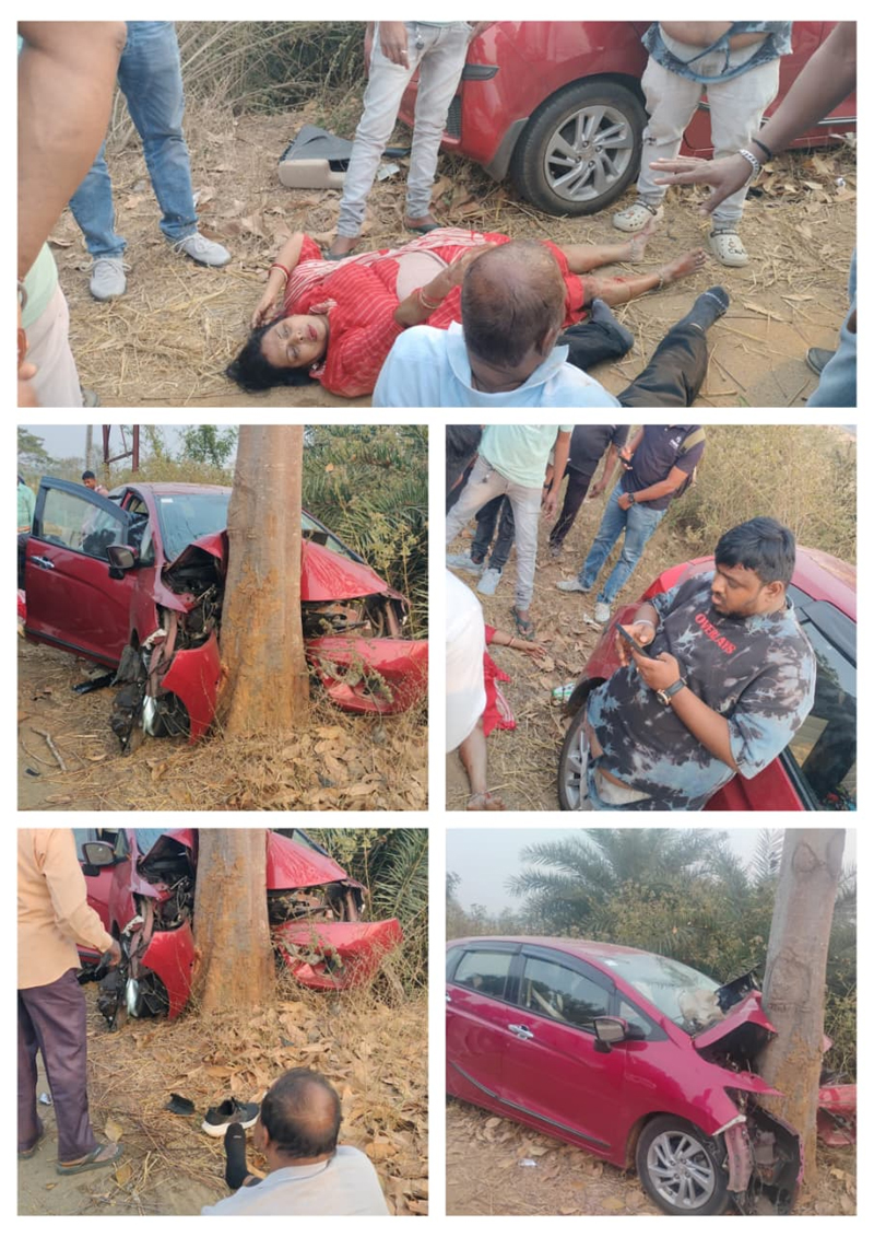 ବେଲଗୁଣ୍ଠା-(ଶିବରାମ ଚୌଧୁରୀ )--ଭୁବନେଶ୍ୱରରୁ ଭୋଜି ଖାଇ ନିଜ ଗ୍ରାମ ଭଞ୍ଜନଗର ଫେରୁଥିବା ବେଳେ ବେଲଗୁଣ୍ଠା ନିକଟରେ ଏକ କାର୍(ଓଡି୦୨AW୯୧୧୬) ଏକ ଗଛକୁ ଧକ୍କା ଦେବା ଫଳରେ ଦମ୍ପତିଙ୍କ ସହ ଗାଡି ଚଳାଉଥିବା ପୁଅ ମଧ୍ୟ ଗୁରୁତର ଆହତ ହୋଇଛି । ଆହତ ମାନଙ୍କୁ ପ୍ରଥମେ ପ୍ରେସ୍ କ୍ଳବ ସଦସ୍ୟ ସୁରେଶ୍ କୁମାର ସୁବୁଦ୍ଧି ଓ ବେଲଗୁଣ୍ଠା ଯୁବକ ପବିତ୍ର ପାତ୍ର ଉଦ୍ଧାର କରି ପବିତ୍ରଙ୍କ ଅଟୋରେ ଉଦ୍ଧାର କରିଥିଲେ ।ପରେ ଆମ୍ବୁଲାନ୍ସ ଓ ଅଟୋ ଯୋଗେ ଭଞ୍ଜନଗର ମେଡିକାଲରେ ଭର୍ତ୍ତି କରିଥିଲେ ।ଖବର ନେବାରୁ ଜଣା ପଡିଛି ଯେ, ଭଞ୍ଜନଗରର ସୁବୁଦ୍ଧି ପରିବାରର ୫ ଜଣ ଭୁବନେଶ୍ୱରରେ ଏକ ଭୋଜିରେ ଯୋଗ ଦେଇ ଫେରୁଥିବା ବେଳେ ବେଲଗୁଣ୍ଠା ଥାନା ଅନ୍ତର୍ଗତ ଉଢୁରା ଓ ଲୁଣିଝୋଳା ମଧ୍ୟରେ ଅପରାହ୍ନ ୩.୩୦ ମି ସମୟରେ କାରଟି ଏକ ଗଛକୁ ଭାରସାମ୍ୟ ହରାଇ ଧକ୍କା ଦେଇଥିଲା । ଯାହା ଫଳରେ କି ପ୍ରଚଣ୍ଡ ଶବ୍ଦ ହୋଇ ଗାଡିରେ ବସିଥିବା ଭଞ୍ଜନଗରର ଏସ୍ ଭାସ୍କର ସୁବୁଦ୍ଧି (୫୫), ତାଙ୍କ ସ୍ତ୍ରୀ ବବିତା ସୁବୁଦ୍ଧି (୫୨), ଭାସ୍କରଙ୍କ ଭାଇ ଏସ୍ ଗୁପ୍ତେଶ୍ୱର ସୁବୁଦ୍ଧି (୫୨), ଗୁପ୍ତେଶ୍ୱରଙ୍କ ସ୍ତ୍ରୀ ଏସ ବବିତା ସୁବୁଦ୍ଧି (୫୦) ଏବଂ ଗାଡି ଚଳାଉଥିବା ଏସ୍ ସୁବ୍ରତ ସୁବୁଦ୍ଧି (୨୮) ଗୁରୁତର ଆହତ ହୋଇଥିଲେ । ସ୍ଥାନୀୟ ଲୋକେ ଓ ଭଞ୍ଜନଗର ରୋଟାରୀ କ୍ଲବର ସଦସ୍ୟ ମାନେ ଗାଡିରୁ ସେମାନଙ୍କୁ ଉଦ୍ଧାର କରିଥିବା ଜଣାପଡିଛି । ଉଦ୍ଧାର ପରେ ସେମାନଙ୍କୁ ପ୍ରଥମେ ଭଞ୍ଜନଗର ଉପଖଣ୍ଡ ଚିକିତ୍ସାଳୟରେ ଭର୍ତ୍ତି କରାଯାଇଥିଲା । ସମସ୍ତଙ୍କ ମୁଣ୍ଡ, ଗୋଡ ଓ ହାତରେ ଗଭୀର ଆଘାତ ଲାଗିଥିବାରୁ ଦୁଇ ଜଣଙ୍କୁ ବ୍ରହ୍ମପୁର ନ ହେଲେ ଭୁବନେଶ୍ବର ସ୍ଥାନାନ୍ତର କରାଯିବ ବୋଲି ମେଡିକାଲ ସୁତ୍ରରୁ ଖବର ମିଳିଛି ।ବେଲଗୁଣ୍ଠା ପୋଲିସ ଘଟଣାସ୍ଥଳରେ ପହଂଚି ତଦନ୍ତ ଚଳାଇଥିଛନ୍ତି ।