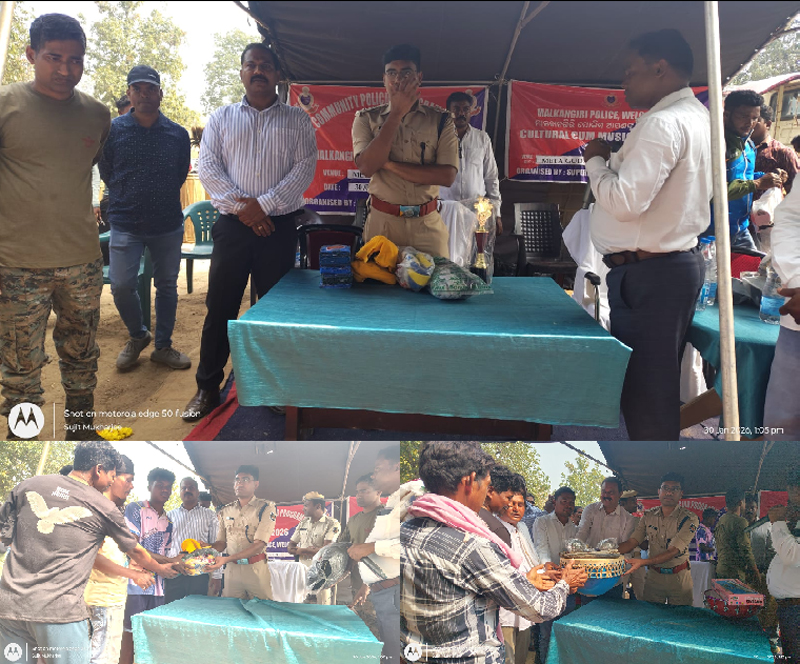 ମାଲକାନଗିରି ରୁ ସୁରେନ୍ଦ୍ର କୁମାର ବେମାଳ,ତାରିଖ- 30/1/2026: ମାଲକାନଗିରି ଜିଲ୍ଲା ପୋଲିସ ପକ୍ଷରୁ ଏମ୍ଭି–୭୯ ଥାନା ଅନ୍ତର୍ଗତ ମେଟାଗୁଡା ଗ୍ରାମରେ ପୋଲିସ–ଜନ ସମ୍ପର୍କ ଶିବିର ସଫଳତାର ସହିତ ଆୟୋଜିତ ହୋଇଛି।ଏହି ଅବସରରେ ଜିଲ୍ଲା ଆରକ୍ଷୀ ଅଧିକ୍ଷକ ଶ୍ରୀ ବିନୋଦ ପାଟିଲ ମୁଖ୍ୟ ଅତିଥି ଭାବେ ଯୋଗ ଦେଇଥିବାବେଳେ, ଏମ୍ଭି–୭୯ ଥାନାର ସମସ୍ତ ଷ୍ଟାଫ ଏବଂ ସବ୍–ଇନ୍ସପେକ୍ଟର ଶ୍ରୀଚନ୍ଦନ ବେହେରା ,ଶ୍ରୀ ଗିରିଶ କୁମାର ସାରକା ତାଣ୍ଡାବାଇ ସରପଞ୍ଚ ସତ୍ୟ ମାଡକାମି, ବିଶ୍ୱନାଥ ରେଡ୍ଡୀ ପ୍ରମୁଖ ଉପସ୍ଥିତ ଥିଲେ।ଶିବିର ଅବସରରେ ଆୟୋଜିତ ବିଭିନ୍ନ କ୍ରୀଡା ପ୍ରତିଯୋଗିତା, ଆଦିବାସୀ ନୃତ୍ୟ ଓ ସଙ୍ଗୀତ କାର୍ଯ୍ୟକ୍ରମର ବିଜେତାମାନଙ୍କୁ ପୁରସ୍କାର ସହିତ ସଙ୍ଗୀତ ଉପକରଣ (musical instruments) ପ୍ରଦାନ କରାଯାଇଥିଲା। କାର୍ଯ୍ୟକ୍ରମରେ ଆଦିବାସୀ ସଂସ୍କୃତି ଓ ପରମ୍ପରାର ଅନୁପମ ଝଲକ ଦେଖିବାକୁ ମିଳିଥିଲା।ଏହା ସହ ଏକ ମାଗଣା ଚିକିତ୍ସା ଶିବିର (free medical camp) ଆୟୋଜିତ ହୋଇଥିଲା, ଯେଉଁଠାରେ ସାଧାରଣ ଲୋକମାନଙ୍କର ସ୍ୱାସ୍ଥ୍ୟ ପରୀକ୍ଷା କରାଯାଇ ଆବଶ୍ୟକ ଔଷଧ ମାଗଣାରେ ପ୍ରଦାନ କରାଯାଇଥିଲା।ଏହି ପୋଲିସ–ଜନ ସମ୍ପର୍କ ଶିବିରର ମୂଳ ଉଦ୍ଦେଶ୍ୟ ଥିଲା ଯୁବପିଢ଼ିଙ୍କୁ କ୍ରୀଡା ଓ ସାଂସ୍କୃତିକ କାର୍ଯ୍ୟକ୍ରମ ପ୍ରତି ଆକୃଷ୍ଟ କରିବା ସହ ପୋଲିସ ଓ ସାଧାରଣ ଲୋକଙ୍କ ମଧ୍ୟରେ ସମନ୍ୱୟ, ବିଶ୍ୱାସ ଓ ସହଯୋଗକୁ ଆହୁରି ସୁଦୃଢ଼ କରିବା