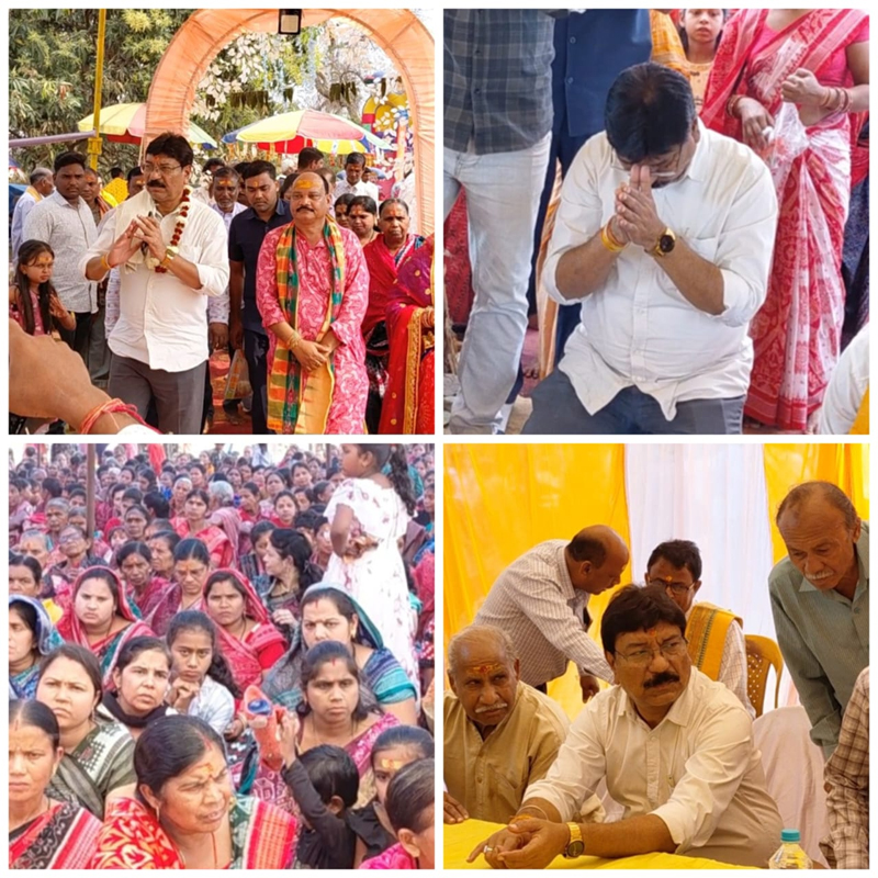 ବିଜେପୁର :-ବରଗଡ଼ ଜିଲ୍ଲାର ବିଜେପୁର ବ୍ଲକ୍ ଅନ୍ତର୍ଗତ ପହଣ୍ଡି ଗାଁରେ ଆୟୋଜିତ ତ୍ରିଦିନାତ୍ମକ “ଭୀମ ଗୁଡ଼ି” ପ୍ରତିଷ୍ଠା ଉତ୍ସବ ତୃତୀୟ ଦିବସରେ ଭକ୍ତି, ଆସ୍ଥା ଓ ପରମ୍ପରାର ମହୋତ୍ସବ ଭାବେ ଶାନ୍ତି ଶୃଙ୍ଖଳାରେ ସମାପ୍ତ ହୋଇଯାଇଛି। ଏହି ଉତ୍ସବରେ ହଜାର ହଜାର ଭକ୍ତ ଓ ଶ୍ରଦ୍ଧାଳୁଙ୍କ ସମାଗମ ଦେଖିବାକୁ ମିଳିଥିଲା।ତୃତୀୟ ଦିନ ସକାଳ ୯ଟା ସମୟରୁ ବିଧୂ ପୂଜା ସହିତ ପୂଜାର୍ଚ୍ଚନା ଆରମ୍ଭ ହୋଇ ମନ୍ଦିର ଶୋଧନ, ବିଗ୍ରହ ପ୍ରାଣ ପ୍ରତିଷ୍ଠା, ହୋମ, ଯୂପ ସ୍ଥାପନ, ଶିଖର କଳସ ସ୍ଥାପନ ଓ ଧ୍ଵଜା ଆରୋହଣ ପରେ ବିଗ୍ରହଙ୍କୁ ମନ୍ଦିର ପ୍ରବେଶ କରାଯାଇଥିଲା। ସମସ୍ତ ଧାର୍ମିକ ନୀତିକାନ୍ତି ପାରମ୍ପରିକ ବିଧିବିଧାନ ଅନୁସାରେ ସମ୍ପାଦିତ ହୋଇଥିଲା।ଏହି ପବିତ୍ର ଅବସରରେ ବିଜେପୁର ବିଧାୟକ ଶ୍ରୀମାନ ସନତ କୁମାର ଗଡ଼ତୀୟା ଯୋଗ ଦେଇ ମନ୍ଦିରରେ ଦର୍ଶନ କରିବା ସହ ପୂଜାର୍ଚ୍ଚନାରେ ଅଂଶଗ୍ରହଣ କରିଥିଲେ। ସେ ଗ୍ରାମବାସୀଙ୍କୁ ଏପରି ଧାର୍ମିକ ଓ ସାଂସ୍କୃତିକ ପରମ୍ପରାକୁ ଅଟୁଟ ରଖିବା ପାଇଁ ଆହ୍ୱାନ କରିଥିଲେ ଏବଂ ଏହା ଗ୍ରାମୀଣ ସମାଜର ଏକତା ଓ ସମନ୍ୱୟକୁ ମଜବୁତ କରେ ବୋଲି କହିଥିଲେ।ଗ୍ରାମବାସୀଙ୍କ ଅକୁଣ୍ଠ ସହଯୋଗରେ କର୍ତ୍ତା ଶ୍ରୀଯୁକ୍ତ ଚିନ୍ତାମଣି ସାହୁ ଓ ତାଙ୍କ ସହଧର୍ମିଣୀ ଶ୍ରୀମତୀ ପ୍ରତିମା ସାହୁ ସମର୍ପିତ ଭାବନାରେ ପୂଜା କାର୍ଯ୍ୟ ତୁଲାଇଥିଲେ। ବ୍ରହ୍ମା ଭାବରେ ପଣ୍ଡିତ ନରେନ୍ଦ୍ର କୁମାର ଦାଶ, ଆଚାର୍ଯ୍ୟ ପଣ୍ଡିତ ନରେନ୍ଦ୍ର ପଣ୍ଡା, ପୂଜକ ପଣ୍ଡିତ ମୁନ୍ନା ଦାଶ ଓ ପଣ୍ଡିତ ପିଣ୍ଡୁ ମହାପାତ୍ରଙ୍କ ସହ ଗ୍ରାମ ଦେବାଦେବୀଙ୍କ ପୂଜକ ଝାଙ୍କର ଶ୍ରୀଯୁକ୍ତ ଶାନ୍ତି ବରିହା ଓ ତାଙ୍କ ପୁତ୍ର ମଙ୍ଗଳୁ ବରିହା ପୂଜାକାର୍ଯ୍ୟ ସମ୍ପାଦନ କରିଥିଲେ।ପୌରାଣିକ ବିଶ୍ୱାସ ଅନୁସାରେ ମାଁ ବାଞ୍ଜିତଳିଏନ୍ ସ୍ୱୟଂଭୁ ଲିଙ୍ଗ ଭାବରେ ପ୍ରକଟିତ ହୋଇ ଗ୍ରାମଦେବତା ଭାବେ ପୂଜା ପାଇଆସୁଛନ୍ତି। ତାଙ୍କ ସହିତ ବୁଢ଼ାରଜା, ସମଲେଇ, ଭୀମ, ହନୁମାନ ବୀର, ଭୁବୁରାତଳିଏନ୍ ପ୍ରମୁଖ ଦେବାଦେବୀ ଗ୍ରାମର ଆସ୍ଥାର ପ୍ରତୀକ ଭାବେ ପୂଜିତ।ଦିନବେଳା ପାରାୟଣ, କବିତା ପାଠ, ମୀନାବଜାର ଓ ଅହୋରାତ୍ର ଅନ୍ନଭୋଗ ବ୍ୟବସ୍ଥା ଉତ୍ସବକୁ ଆନନ୍ଦମୟ କରିଥିବାବେଳେ, ରାତିରେ କୁମ୍ଭାରୀ ଭଗବାନ ପାର୍ଟିଙ୍କ ନାଟକ ଦର୍ଶକଙ୍କୁ ଭାରି ମନୋରଞ୍ଜନ କରିଥିଲା। ଶାନ୍ତି ଶୃଙ୍ଖଳା ରକ୍ଷାରେ ବିଜେପୁର ପୋଲିସର ଭୂମିକା ମଧ୍ୟ ପ୍ରଶଂସନୀୟ ଥିଲା।