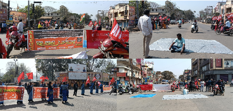 କେନ୍ଦୁଝର,ତା୧୨/୨- ପୂର୍ବ ଘୋଷଣା ମୁତାବକ ଆଜି ବିଭିନ୍ନ ଶ୍ରମିକ ସଂଗଠନ ପକ୍ଷରୁ ଶ୍ରମିକ ବିରୋଧୀ ଚାରି ଶ୍ରମ କୋଡ଼ ବାତିଲ ଦାବି କରି ଦେଶ ବ୍ୟାପୀ ହରତାଳ ପାଳିତ ହୋଇଯାଇଛି। କେନ୍ଦୁଝର ସହରରେ ସକାଳୁ ଶ୍ରମିକ ସଂଗଠନ କର୍ମକର୍ତ୍ତା ମାନେ ଗାନ୍ଧୀ ଛକ ଓ ଜିଲ୍ଲାପାଳଙ୍କ ଦପ୍ତର ସମ୍ମୁଖରେ ଏକଜୁଟ ହୋଇ ବିକ୍ଷୋଭ କରି ପିକେଟିଂ କରିଥିଲେ। ରାସ୍ତା ଉପରେ ବସି ରହି ଗାଡ଼ି ଚଳାଚଳ ବନ୍ଦ କରିଥିଲେ। ଏହାର ପ୍ରଭାବରେ ଜାତୀୟ ରାଜପଥ ଓ ରାଜ୍ୟ ସଡ଼କ ପଥରେ ଯାତ୍ରୀବାହୀ ଓ ପଣ୍ୟ ପରିବହନ ଗାଡ଼ି ଚଳାଚଳ ବାଧାପ୍ରାପ୍ତ ହୋଇଥିଲା ଅଧିକାଂଶ ଗାଡ଼ି ଗଡ଼ି ନଥିଲା। ସେହିପରି କେନ୍ଦୁଝର ବଜାର ଅଧିକାଂଶ ଦୋକାନ ବନ୍ଦ ରହିଥିଲା। ଅନେକ ଶିକ୍ଷାନୁଷ୍ଠାନ ବନ୍ଦ ରହିଥିଲା ବୋଲି ଖବର ଆସିଛି। ଆନ୍ଦୋଳନକାରୀ ମାନେ କେନ୍ଦ୍ର ସରକାରଙ୍କ ଶ୍ରମିକ ମାରଣ ନୀତିକୁ ତୀବ୍ର ପ୍ରତିବାଦ କରିଥିଲେ ସେମାନେ ପୁରୁଣା ପେନସନ ଦାବି କରି ଆଠ ଘଣ୍ଟା ବଦଳରେ ବାର ଘଣ୍ଟା କାମକୁ ବିରୋଧ କରିଥିଲେ। ଆଇଏନଟିୟୁସି, ଏଚଏମଏସ,ଏଆଇଟିୟୁସି,ସେଲ୍ସ ରିପ୍ରେଜେଣ୍ଟେଟିଭ୍ ସଂଗଠନ, ଅଙ୍ଗନବାଡୀ ସଂଗଠନ ଆଦି ଏହି ହରତାଳ ନେତୃତ୍ୱ ନେଇଥିଲେ। ଜିଲ୍ଲା କଂଗ୍ରେସ, ବିଜେଡ଼ି, କମ୍ୟୁନିଷ୍ଟ ଦଳ ମାନଙ୍କ ପକ୍ଷରୁ ମଧ୍ୟ ଏହାକୁ ସମର୍ଥନ ମିଳିଥିଲା।