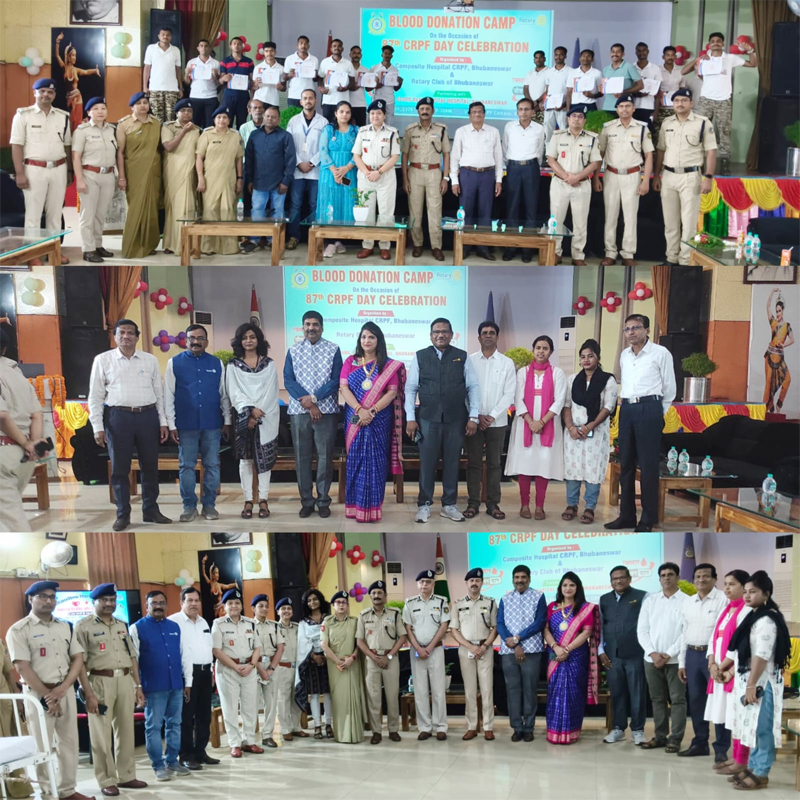 ଭୁବନେଶ୍ୱର , ମାର୍ଚ୍ଚ 10: ସିଆରପିଏଫ ଦିବସ ଅବସରରେ ଗତ 9 ମାର୍ଚ୍ଚରେ ରୋଟାରୀ କ୍ଲବ ଅଫ ଭୁବନେଶ୍ୱର ପକ୍ଷରୁ ସିଆରପିଏଫ କ୍ୟାମ୍ପସ୍ରେ ଏକ ରକ୍ତଦାନ ଶିବିର ସଫଳତାର ସହ ଆୟୋଜିତ ହୋଇଥିଲା।