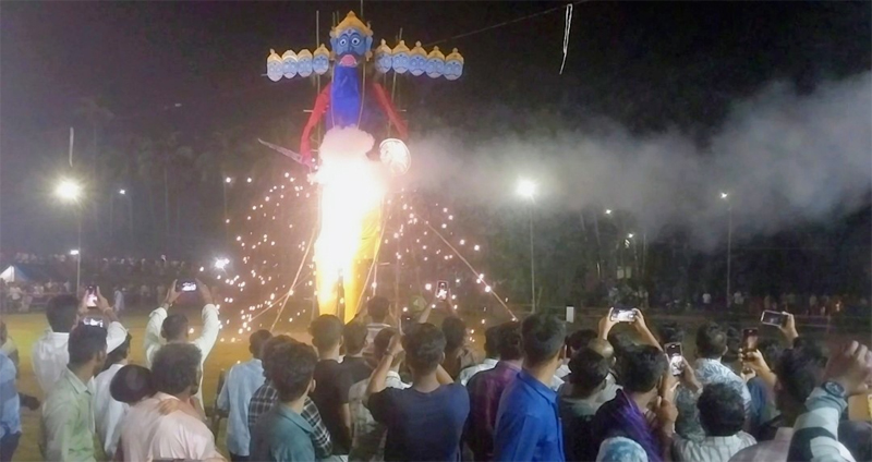 ଓଡ଼ଗାଁ, ୫।୪(ଶ୍ରୀକାନ୍ତ କୁମାର ମିଶ୍ର): ନୟାଗଡ଼ ଜିଲ୍ଲାର ଓଡ଼ଗାଁ ବିଜେ ପ୍ରଭୁ ଶ୍ରୀ ରଘୁନାଥ ଜୀଉଙ୍କ ପ୍ରସିଦ୍ଧ ଶ୍ରୀରାମ ନବମୀ ଯାତ୍ରା ନବମ ସନ୍ଧ୍ୟା ଯୁଦ୍ଧଯାତ୍ରା ବେଶ ପରିପ୍ରେକ୍ଷୀରେ ରାବଣପୋଡ଼ି ଉତ୍ସବ ଅନୁଷ୍ଠିତ ହୋଇଯାଇଛି । ରବିବାର ପ୍ରଭୁଙ୍କ ଯୁଦ୍ଧଯାତ୍ରା ଦୃଶ୍ୟ ଓ ରାବଣ ପୋଡ଼ି ଉତ୍ସବ ଦର୍ଶନ ପାଇଁ ହଜାର ହଜାର ଶ୍ରଦ୍ଧାଳୁଙ୍କ ଭିଡ଼ ପରିଲକ୍ଷିତ ହୋଇଥିଲା । ଯୁଦ୍ଧଯାତ୍ରା ଦୃଶ୍ୟରେ ପ୍ରଭୁ ଶ୍ରୀରାମ ଓ ଲକ୍ଷ୍ମଣ, ମାତା ସୀତାଙ୍କ ଉଦ୍ଧାର ପାଇଁ ହନୁମାନ ଓ ଅଙ୍ଗଦଙ୍କ ସ୍କନ୍ଧରେ ବସି ଲଙ୍କା ଅଭିଯାନରେ ବାହାରିବା ଚିତ୍ରଣ ଦର୍ଶକମାନଙ୍କୁ ଆକର୍ଷିତ କରିଥିଲା। ବାନର ସେନା ସହ ଅଷ୍ଟ ସେନାଧ୍ୟକ୍ଷଙ୍କ ସଜ୍ଜିତ ଯୁଦ୍ଧ ରୁପ ମଧ୍ୟ ଆକର୍ଷଣୀୟ ଥିଲା। ପରେ ରାବଣ ବଧ, ସୀତାଙ୍କ ଉଦ୍ଧାର ଓ ବିଭୀଷଣଙ୍କ ରାଜ୍ୟାଭିଷେକ ଦୃଶ୍ୟ ଭକ୍ତମାନଙ୍କୁ ମୋହିତ କରିଥିଲା। ଅନ୍ୟପକ୍ଷରେ ଓଡ଼ଗାଁ ରାବଣ ପୋଡ଼ି କମିଟି ପକ୍ଷରୁ ସ୍ଥାନୀୟ ମହୋତ୍ସବ ପଡ଼ିଆରେ ୨୬ତମ ରାବଣ ପୋଡ଼ି ଉତ୍ସବ ଆୟୋଜିତ ହୋଇଥିଲା। ପାଇକସାହି ରାମଲିଳା କମିଟି ଦ୍ୱାରା ସ୍ବତନ୍ତ୍ର ଭାବେ ସଜ୍ଜିତ ହୋଇଥିବା ରାମ, ଲକ୍ଷଣ, ହନୁମାନ ଓ ରାବଣଙ୍କୁ ନେଇ ରାବଣ ବଦ୍ଧ ନାଟକ ପରିବେଷଣ ପରେ ପ୍ରାୟ ୩୦ ଫୁଟ ଉଚ୍ଚ ବିଶିଷ୍ଟ ରାବଣ ପ୍ରତିମୂର୍ତ୍ତିରେ ନୟାଗଡ଼ ଜିଲ୍ଲା ପରିଷଦ ଅଧ୍ୟକ୍ଷ ଇ. ଦେବାଶିଷ ପଟ୍ଟନାୟକ ଅଗ୍ନି ସଂଯୋଗ କରିବା ପରେ ରାମବାଣରେ ରାବଣର ପ୍ରତିକୃତି ଜଳି ଉଠିଥିଲା ଏବଂ କେତେକ ଆତସବାଜିର ଝଲକ ଦେଖି ଦର୍ଶକମାନେ ଘରକୁ ଫେରିଥିଲେ । ଏହା ଥିଲା ପାପ ଉପରେ ପୁଣ୍ୟ, ଅଧର୍ମ ଉପରେ ଧର୍ମର ବିଜୟ ବାର୍ତ୍ତା । କାର୍ଯ୍ୟକ୍ରମରେ ନୟାଗଡ଼ ବିଧାୟକ ଡ. ଅରୁଣ କୁମାର ସାହୁ, ଓଡ଼ଗାଁ ତହସିଲଦାର ଡ. ମାନସ ରଞ୍ଜନ ଭୋଇ, ଜିଲ୍ଲାପରିଷଦ ସଭ୍ୟ ବିରଜା ଲକ୍ଷ୍ମୀ ସାହୁ, ଝିଲ୍ଲି ପ୍ରଧାନ, ପଞ୍ଚାୟତ ସମିତି ଅଧ୍ୟକ୍ଷ ଲୋକନାଥ ସାହୁ, ଏନ୍ଏସି ଅଧିକାରୀ ନିହାର ରଞ୍ଜନ ବେହେରା ପ୍ରମୁଖ ଯୋଗ ଦେଇଥିଲେ । ଆଜିର ରାବଣପୋଡ଼ି ଉତ୍ସବରେ ବହୁସଂଖ୍ୟକ ଦର୍ଶକ ଯୋଗଦେଇ ଉତ୍ସାହର ସହ ଉପଭୋଗ କରିଥିଲେ।