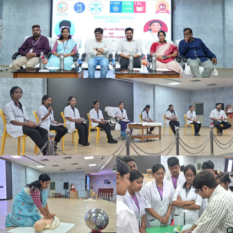 ସହର ଉପକଣ୍ଠରେ ଥିବା ସେଞ୍ଚୁରିଆନ ୟୁନିଭରସିଟି ଅଫ୍ ଟେକ୍ନୋଲୋଜି ଆଣ୍ଡ୍ ମ୍ୟାନେଜମେଣ୍ଟ (ସି.ୟୁ.ଟି.ଏମ) ର ନର୍ସିଂ ସ୍କୁଲ , ହେଲ୍ଥ କ୍ଲବ୍ ସି.ଏ.ଏସ.ଆର ସହିତ ମିଳିତ ଭାବରେ , ମୌଳିକ ଜୀବନ ସହାୟତା (ବି.ଏଲ.ଏସ) ଏବଂ ସ୍ୱାସ୍ଥ୍ୟସେବା ପ୍ରଯୁକ୍ତି ବିଦ୍ୟାରେ ଉନ୍ନତି ଉପରେ ଧ୍ୟାନ ଦେଇ ପ୍ରଭାବଶାଳୀ ଶୈକ୍ଷିକ ଏବଂ ବ୍ୟବହାରିକ ଅଧିବେଶନର ଏକ ଶୃଙ୍ଖଳା ସହିତ ବିଶ୍ୱ ସ୍ୱାସ୍ଥ୍ୟ ଦିବସ କାର୍ଯ୍ୟକ୍ରମ ପାଳନ କରିଥିଲା।