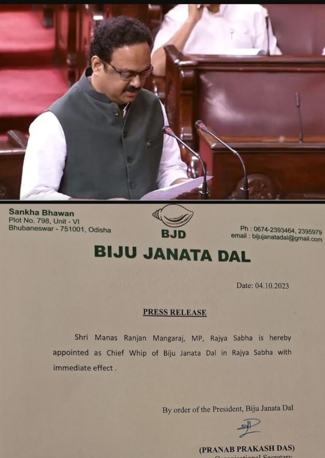 ଭୁବନେଶ୍ୱର : ସାଂସଦ ଶ୍ରୀ ମାନସ ରଞ୍ଜନ ମଙ୍ଗରାଜଙ୍କୁ ବିଜୁ ଜନତା ଦଳ ଦେଇଛି ଆଉ ଏକ ଗୁରୁ ଦାୟିତ୍ୱ. ବିଜୁ ଜନତା ଦଳ ସଭାପତି ଶ୍ରୀ ନବୀନ ପଟ୍ଟନାୟକଙ୍କ ଆଦେଶ କ୍ରମେ ଶ୍ରୀ ମଙ୍ଗରାଜଙ୍କୁ ରାଜ୍ୟସଭାରେ ସଂସଦୀୟ ଦଳର ମୁଖ୍ୟ ସଚେତକ ଭାବେ ଦଳ...
