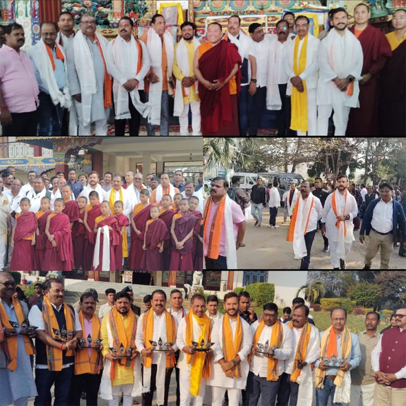 ସେଠାରେ ପହଞ୍ଚିବା ପରେ ମନ୍ଦିରର କୁନି କୁନି ଲାମାମାନେ ମନ୍ତ୍ରୀ ବିଭୂତି ଜେନା , ଗକୁଳାନନ୍ଦ ମଲ୍ଲିକ ଓ ବିଧାୟକ ରୁପେସ ପାଣିଗ୍ରାହୀ , ବାବୁ ସିଂ, ଦୁଷ୍ମନ୍ତ ସ୍ୱାଇଁ , ଅକ୍ଷୟ ସାହୁ ପ୍ରମୁଖଙ୍କୁ ତିବତୀୟ ଉତ୍ତରୀୟ ଦେଇ ଭବ୍ୟ ସ୍ବାଗତ କରିଥିଲେ। ତାପରେ ଲାମା ଗୁରୁଜୀଙ୍କୁ ସାକ୍ଷାତ କରି ବୁଦ୍ଧଙ୍କ ଦର୍ଶନ କରିବା ସହ ତାଙ୍କର ସାନିଧ୍ୟ ଲାଭ କରିଥିଲେ।