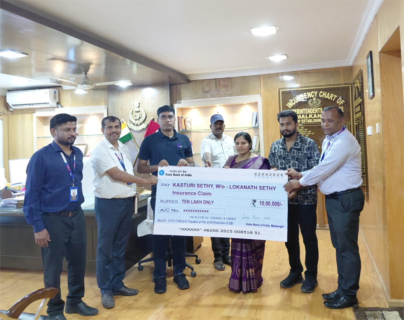ମାଲକାନଗିରି ରୁ ସୁରେନ୍ଦ୍ର କୁମାର ବେମାଳ: ମାଲକାନଗିରି ଭାରତୀୟ ଷ୍ଟେଟ ବ୍ୟାଙ୍କ ମୁଖ୍ୟ ଶାଖା ତରଫରୁ ଆରକ୍ଷୀ ଅଧିକ୍ଷକ କାର୍ଯ୍ୟାଳୟ ରେ 10 ଲକ୍ଷ ଟଙ୍କା ର cheque ପ୍ରଦାନ କରା ଯାଇଛି. ଏହି ଉତ୍ସବ ରେ ମୁଖ୍ୟ ଅତିଥି ରୂପେ ଆରକ୍ଷୀ ଅଧୀକ୍ଷକ ବିନୋଦ ପାଟିଲ H, ଶ୍ରୀମତୀ କସ୍ତୁରୀ ସେଠି ସ୍ୱାମୀ ସ୍ବର୍ଗତ ଲୋକନାଥ ସେଠି କୁ ପ୍ରଦାନ କରିଥିଲେ.