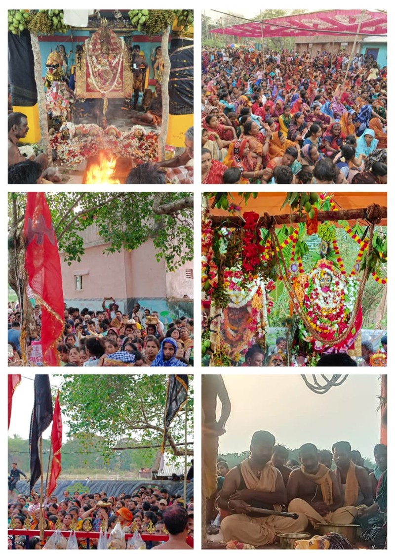 ବେଲଗୁଣ୍ଠା, 13/04,-(ଶିବାରମ ଚୌଧୁରୀ )-ବେଲଗୁଣ୍ଠା ବ୍ଳକ୍ ର ବିଭିନ୍ନ ଗ୍ରାମରେ ଉଦଯାପିତ ହୋଇଯାଇଛି ଭକ୍ତି ଏବଂ ବିଶ୍ୱାସର ଗଣପର୍ବ ଦଣ୍ଡଯାତ୍ରା I ଏହି ବ୍ଳକ୍ ର ପ୍ରାୟ ଅଠରଟି ଗ୍ରାମରେ ଦଣ୍ଡ ଯାତ୍ରା ରହିଥିବା ବେଳେ ସେଥିମଧ୍ୟରୁ ଆଜି ଷୋହଳଟି ଗ୍ରାମରେ ମାସନ୍ତ ମେରୁ ଉଦଯାପିତ ହୋଇ ରୁଦ୍ର ଏବଂ କାଳୀ ନିଜ ମନ୍ଦିରକୁ ଫେରିଥିବା ବେଳେ ମାନସିକ ଧାରୀ ଦଣ୍ଡଭୂକ୍ତାମାନେ ନିଜ ନିଜ ଘରକୁ ପ୍ରତ୍ୟାବର୍ତ୍ତନ କରିଛନ୍ତି I ଆଜି ବେଲଗୁଣ୍ଠା ବ୍ଳକ୍ ର ସିଂହମର୍ଦ୍ଦନ,ପାଲକଷଣ୍ଢା,ବେଲଗୁଣ୍ଠା , ବେଲଗୁଣ୍ଠା ଖଦାଳ ସାହି,କୋକଲୁଣ୍ଡା, ଆମ୍ବପୁଆ,ତନରଡ଼ା,ଘୁ.ନୂଆଗାଁ,ବାଣତୁମ୍ବ,ଜିଲିବା,ବାଲିଭାଗ,ଗୋବରା,ଡେଙ୍ଗାପଦର, ବଡବୋର୍ସିଙ୍ଗ,ଦହିମୁଣ୍ଡଳୀ,କୁଶପଲ୍ଲୀ ଆଦି ଗ୍ରାମରେ ଝାମୁଯାତ୍ରା ଅନୁଷ୍ଠିତ କରଯାଇ ଦଣ୍ଡଯାତ୍ରା ଉଦଯାପିତ ହୋଇଛି I ଆଜି ରୀତିନୀତି ମୁତାବକ ପ୍ରାତଃ ସମୟରୁ ବିଭିନ୍ନ ଗ୍ରାମର ଦଣ୍ଡୁଆ ମାନେ ଠାକୁରଙ୍କୁ ଧରି ଦଣ୍ଡଯାତ୍ରା ଥିବା ଗ୍ରାମକୁ ଫେରିଥିଲେ I ସେଠାରେ ଠାକୁରଙ୍କର ଦୈନନ୍ଦିନ ପୂଜାବିଧି କରାଯିବା ସହିତ ମଧ୍ୟାହ୍ନରେ ଧୂଳିଦଣ୍ଡ ଅନୁଷ୍ଠିତ ହୋଇଥିଲା I ଅପରାହ୍ଣରେ ପାଣିଦଣ୍ଡ ଏବଂ ନଗର ଭ୍ରମଣ ସରିବା ପରେ ମେରୁ ମଣ୍ଡପକୁ ଠାକୁର ବିଜେ କରିଥିଲେ I ସେଠାରେ ହୋମ ଅନୁଷ୍ଠିତ ହେବା ସହିତ କାଳିସୀଙ୍କୁ ସ୍ନାନ କରାଯିବା ପରେ ଝାମୁଯାତ୍ରା ଅନୁଷ୍ଠିତ ହୋଇଥିଲା I ପ୍ରଥା ପରମ୍ପରା ଅନୁସାରେ କାଳିସୀଙ୍କ ନାକରୁ ତିନି ଟୋପା ରକ୍ତ ଅଗ୍ନି କୁଣ୍ଡରେ ପଡ଼ିବା ପର୍ଯ୍ଯନ୍ତ ତାଙ୍କୁ ଅଗ୍ନି କୁଣ୍ଡ ଉପରେ ମେରୁ ଖୁଣ୍ଟ ଉପରେ ଝୁଲା ଯାଇଥିଲା I ଏହାପରେ ଝାମୁ ଖୁଣ୍ଟରେ ବନ୍ଧା ଯାଇଥିବା ଖଜୂରୀ ଏବଂ ଆମ୍ବକୁ ଶ୍ରଦ୍ଧାଳୁଙ୍କ ଉଦ୍ଦେଶ୍ୟରେ ଫିଙ୍ଗା ଯାଇଥିଲା I ପ୍ରବଳ ଖରା ସତ୍ତ୍ୱେ ଝାମୁଯାତ୍ରା ଦେଖିବା ପାଇଁ ମେରୁମଣ୍ଡପ ଗୁଡ଼ିକରେ ଶ୍ରଦ୍ଧାଳୁଙ୍କ ପ୍ରବଳ ଭିଡ଼ ଦେଖିବକୁ ମିଳିଥିଲା I ହରିବୋଲ,ହୁଳହୁଳି,ଜୟ ରୁଦ୍ରକାଳୀ ଧ୍ୱନି ସହିତ ଢୋଲ,ମହୁରୀ,ଗିନି ଶବ୍ଦରେ ମେରୁ ମଣ୍ଡପ ଗୁଡ଼ିକ ପ୍ରକମ୍ପିତ ହୋଇଥିଲା I ବିଶେଷ କରି ଝାମୁଯାତ୍ରା ପରେ ପ୍ରସାଦ ରୂପେ ଫୋପଡା ଯାଉଥିବା ଖଜୂରୀ ଏବଂ ଆମ୍ବ ଗୋଟାଇବା ପାଇଁ ଶ୍ରଦ୍ଧାଳୁଙ୍କ ମଧ୍ୟରେ ଏକ ପ୍ରକାର ପ୍ରତିଯୋଗିତା ଦେଖିବାକୁ ମିଳିଥିଲା I ସନ୍ଧ୍ୟାରେ ଆଳତୀ ଅନୁଷ୍ଠିତ ହେବା ପରେ ରାତିରେ ଚଳିତ ଦଣ୍ଡ ଯାତ୍ରାର ଅନ୍ତିମ ସାଂସ୍କୃତିକ କାର୍ଯ୍ୟକ୍ରମ ଅନୁଷ୍ଠିତ ହୋଇଥିଲା I ମଙ୍ଗଳବାର ମହା ବିଷୁବ ସଂକ୍ରାନ୍ତିରେ ବ୍ଳକ୍ ର ଅନ୍ୟ ଦୁଇ ଗ୍ରାମ ଜାଲଖାଇ ଏବଂ ଇନ୍ଦନପୁର ଗ୍ରାମରେ ଝାମୁଯାତ୍ରା ଅନୁଷ୍ଠିତ ହେବ I ଝାମୁଯାତ୍ରାକୁ ଶୃଙ୍ଖଳିତ କରିବା ନିମନ୍ତେ ବେଲଗୁଣ୍ଠା ଥାନା ଅଧିକାରୀ ରେବତୀ ଶବର ଏବଂ ଗାଙ୍ଗପୁର ଥାନା ଅଧିକାରୀ ବନ ବିହାରୀ ପ୍ରଧାନଙ୍କ ତତ୍ତ୍ୱାବଧାନରେ ମେରୁ ମଣ୍ଡପ ଏବଂ ସାଂସ୍କୃତିକ ମଞ୍ଚ ନିକଟରେ ପୋଲିସ୍ ବାହିନୀ ମୁତୟନ ରହିଥିଲେ I