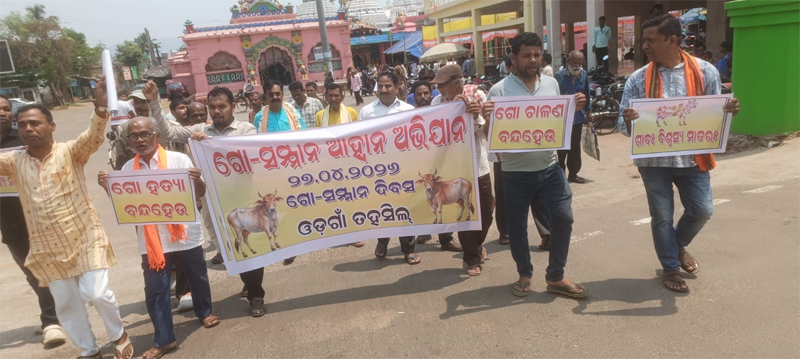 ଓଡ଼ଗାଁ, ୨୭।୪(ଶ୍ରୀକାନ୍ତ କୁମାର ମିଶ୍ର): ହିନ୍ଦୁ ସଂସ୍କୃତିର ଆରାଧ୍ୟା ଗୋମାତାଙ୍କୁ ରାଷ୍ଟ୍ରୀୟ ସମ୍ମାନ ଓ ସୁରକ୍ଷା ପ୍ରଦାନ ସହ ଗୋହତ୍ୟା ବନ୍ଦ ଦାବିରେ ସୋମବାର ସର୍ବଭାରତୀୟ ସ୍ତରରେ ସାଧୁସନ୍ଥମାନଙ୍କ ଆହ୍ୱାନକ୍ରମେ “ଗୋ ସମ୍ମାନ ଅଭିଯାନ” ଆୟୋଜିତ ହୋଇଥିଲା। ଏହାର ଅଂଶ ଭାବେ ନୟାଗଡ଼ ଜିଲ୍ଲାର ଓଡ଼ଗାଁ ଶାଖା ପକ୍ଷରୁ ଏକ ଶୋଭାଯାତ୍ରା ଆୟୋଜନ କରାଯାଇଥିଲା।